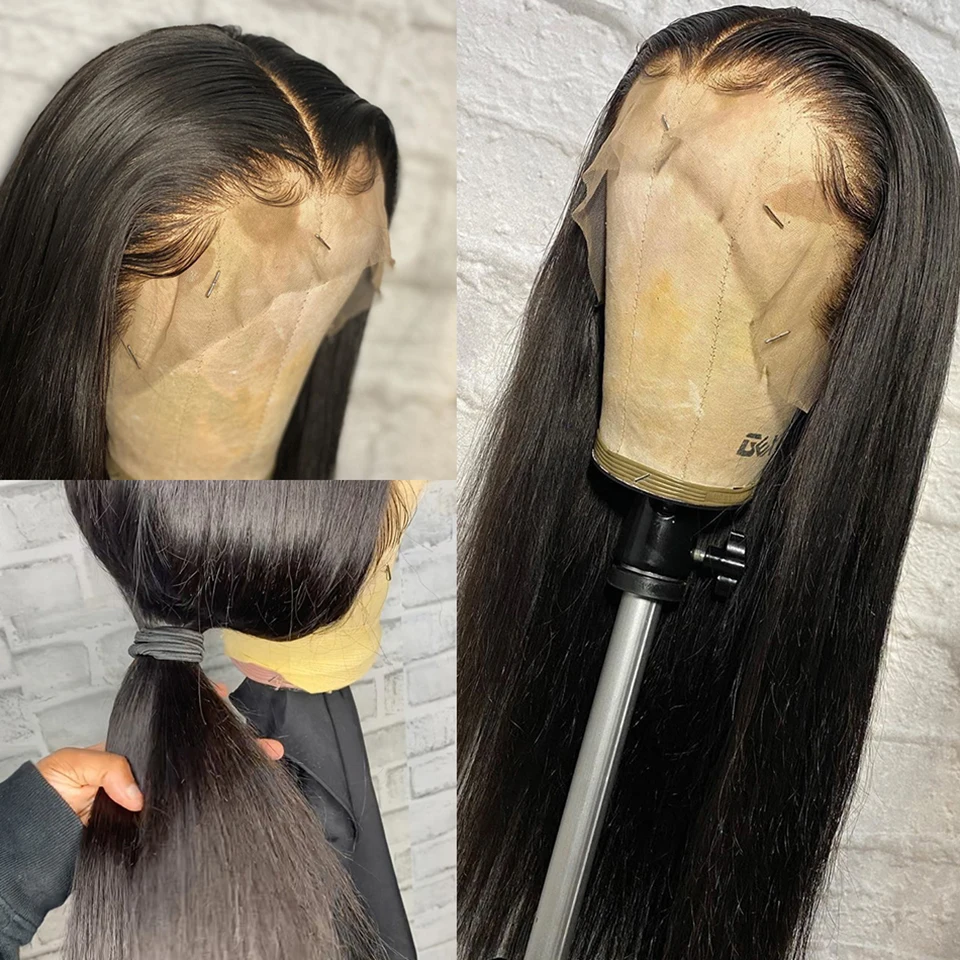 Парик из человеческих волос с фронтальной сеткой 13x4 HD, 30 дюймов, прямые волосы, прозрачные кружевные парики для черных женщин, предварительно выщипанные бразильские волосы без повреждений