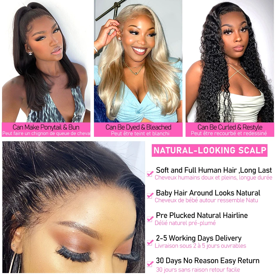30 дюймов, 180% плотность, кружевной передний парик, HD прозрачные ...