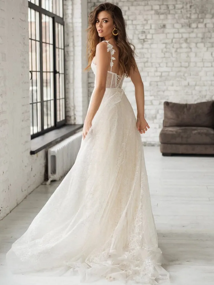 Женское ТРАПЕЦИЕВИДНОЕ свадебное платье, мягкое Тюлевое платье с открытой спиной, аппликацией, без рукавов, со шлейфом, 2022