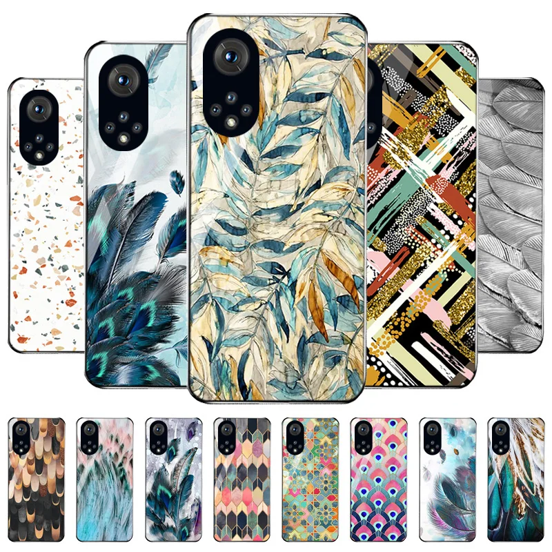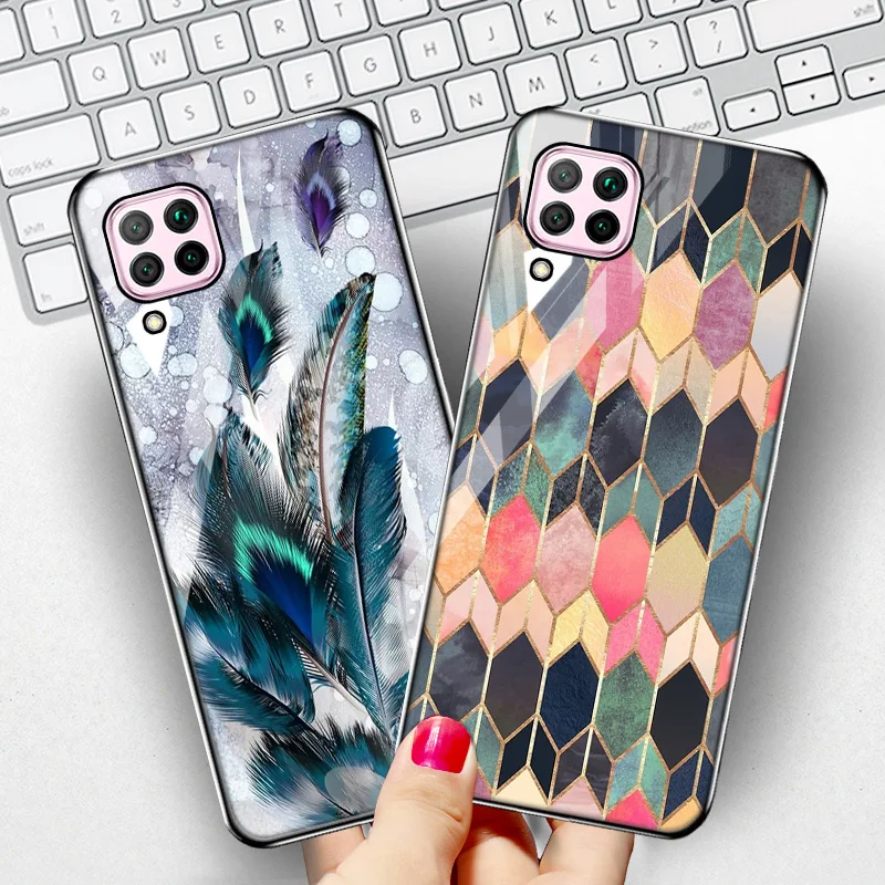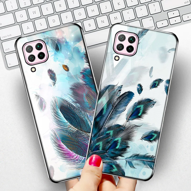 Чехол Mate 20 Lite для Huawei Nova 8i, чехол с перьями для телефона Mate 40 30 Pro 20X Nova 7 6 SE 5i Pro 4E 3E 2S, задняя крышка из закаленного стекла