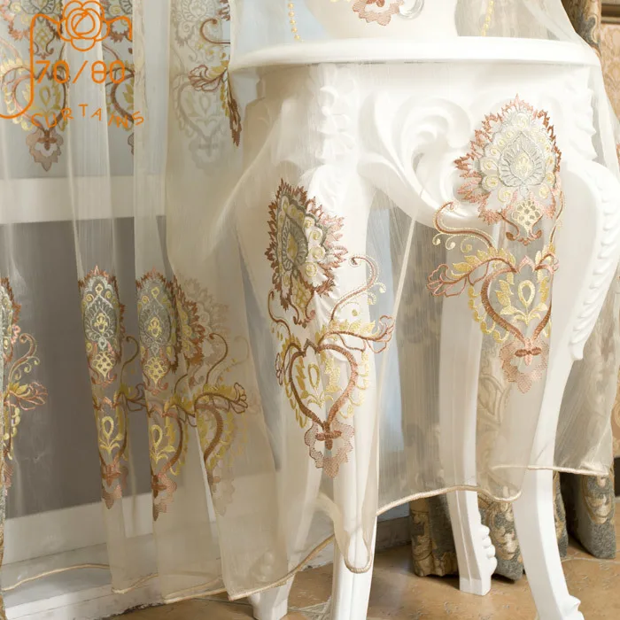 Высококачественные Ретро тисненые вышитые марлевые шторы для гостин...