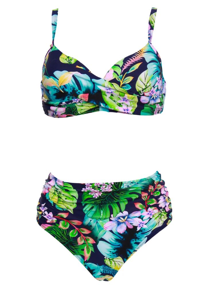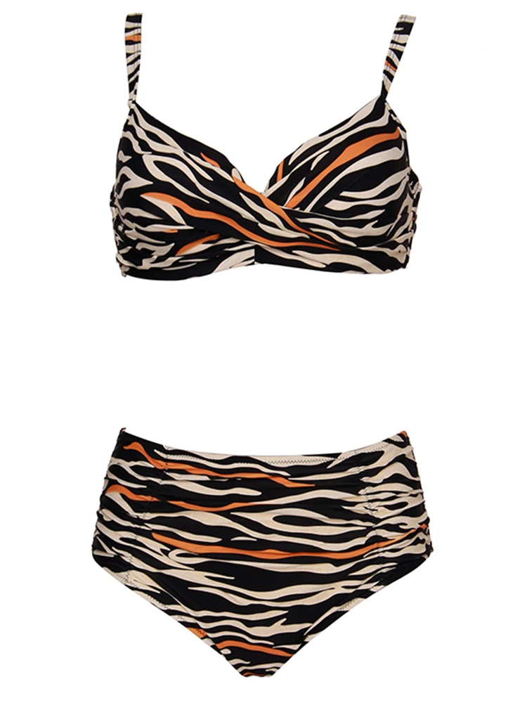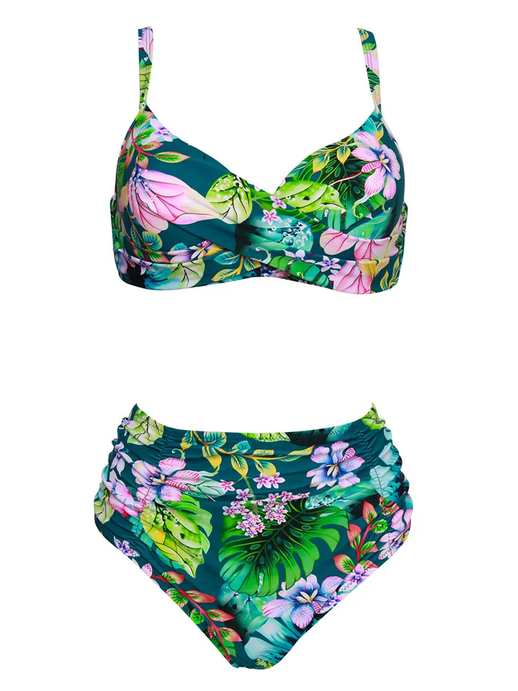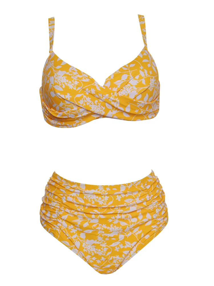 Design:A bikini top with underwire push up your bust, while adjustable straps lends more support.A high waist swim bottom with wrinkle detailed, while the moderate leg cut offer more coverage.