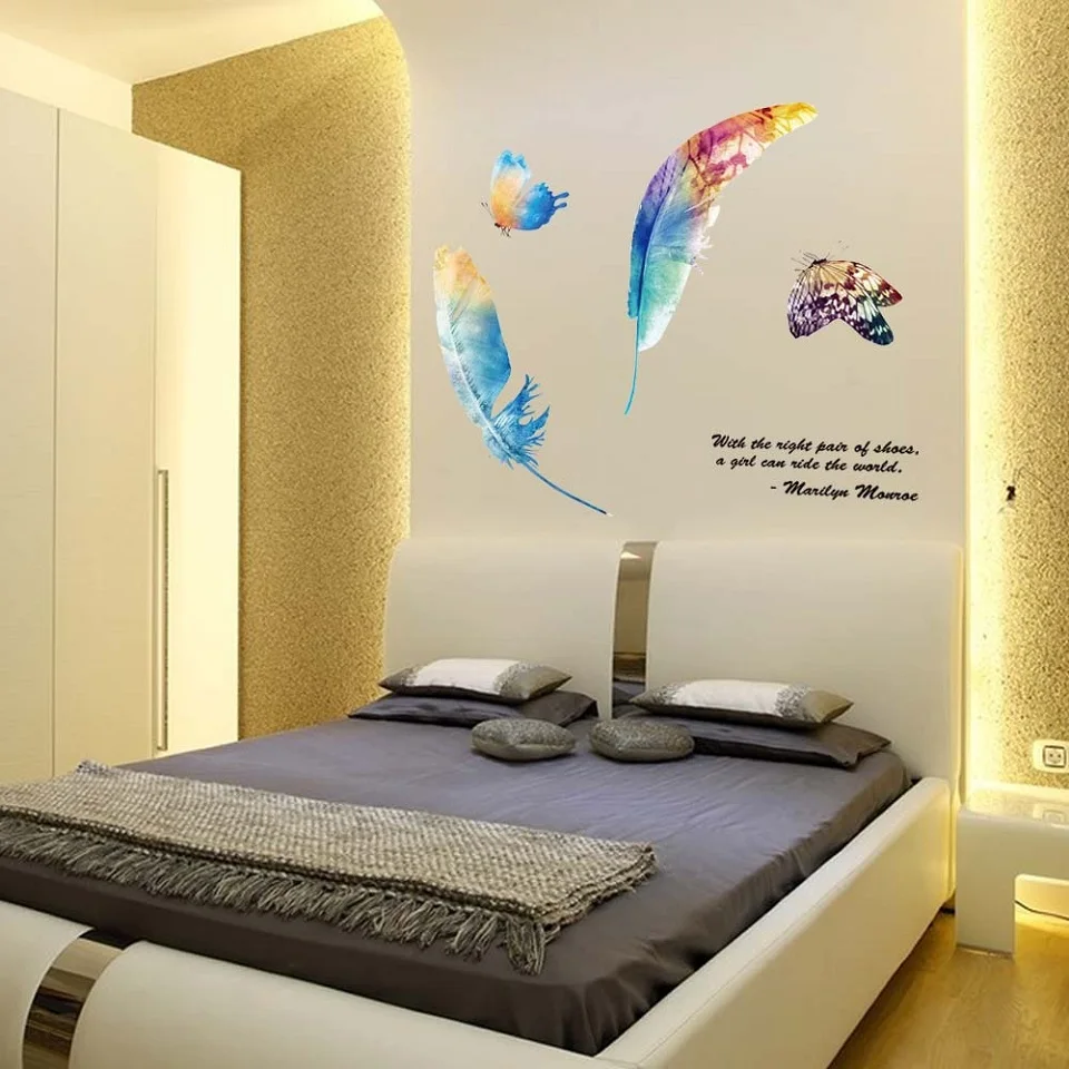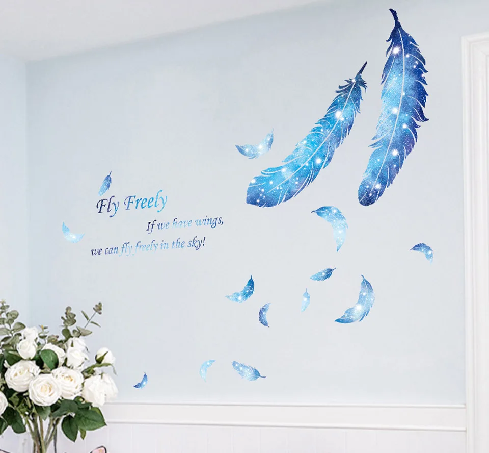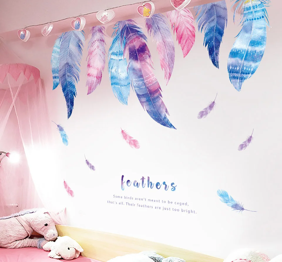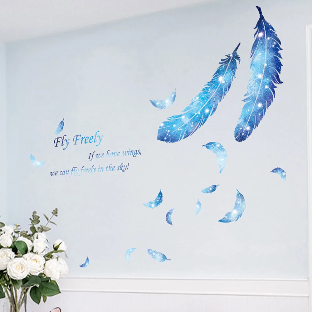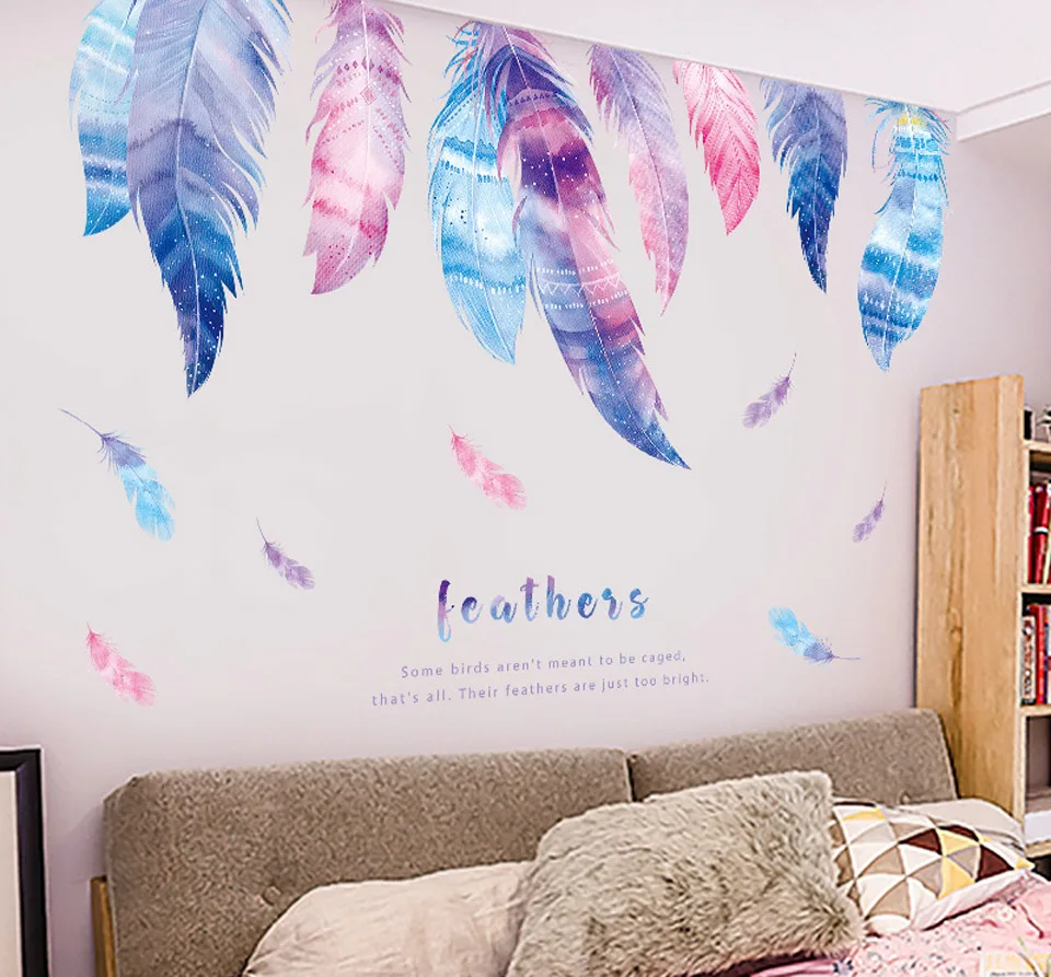 Настенные Стикеры с перьями в скандинавском стиле большого размера для детской комнаты, девушек, гостиной, спальни, украшение, сказочные обои, постер, домашний декор