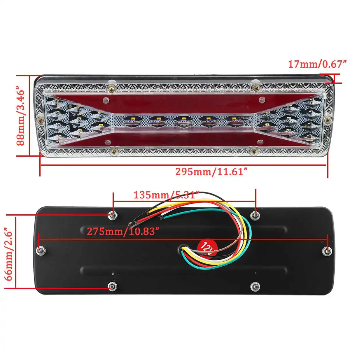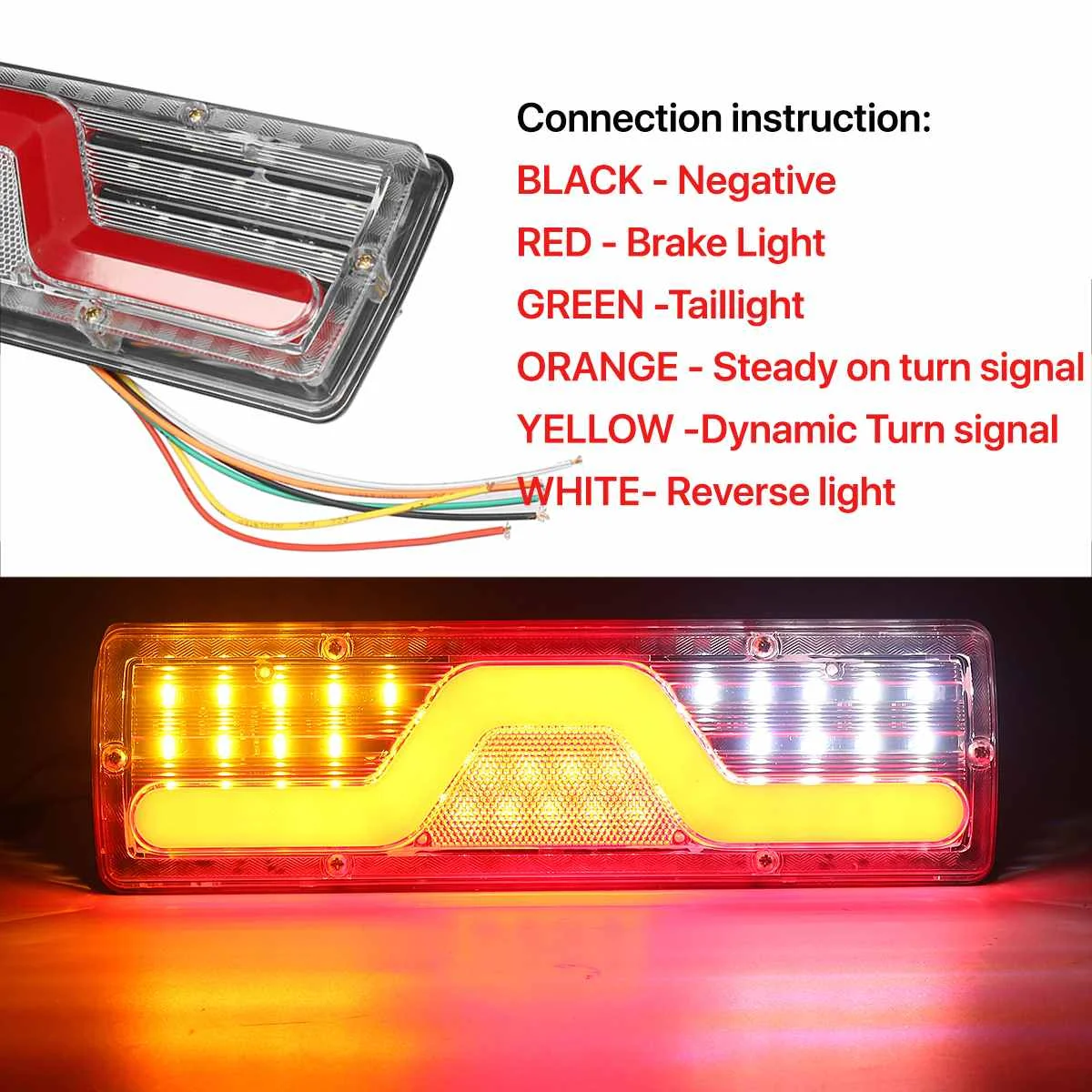 2x24V 42LED струящийся задний светильник с поворотным сигналом, стоп-сигнал, задний фонарь для грузовика прицепаПосылка включает в себя:2 шт. светильник прицепа (слева и справа)Спецификация:Номер модели: I15704Название продукта: струящийся трейлер грузовик задний светильникМатериал: АБС-пластик + ПоликарбонатСветильник: красный, желтый, белыйНапряжение: 24 ВСветодиодный: 42 светодиодныйСрок службы: ≥ 50000 чРазмещение на транспортном средстве: задний, левый, правыйФункции: задний/тормозной светильник, световой светильник, задний светильникКол-во: 2 шт./параПодключение проводки:Черный: отрицательныйЖелтый: сигнал поворота беговой воды (желтый)Красный: тормозной светильникЗеленый: светильник для вожденияБелый: светильник заднего ходаОсобенности:Работает на 24 в источнике питания.Водонепроницаемый, ударопрочный и вибрационный, устойчивый к ультрафиолетовому излучению.Высокое качество и долговечность, длительный срок службы и низкое энергопотребление.Подходит для большинства грузовиков, UTE, прицепов, караванов, кемперов, автобусов, фургонов и т. д.Примечание:1. Мы предоставляем четкие изображения, измерения, где это возможно. Пожалуйста, проверьте как можно больше, чтобы убедиться, что товар тот, который вам нужен.2. Замеры сделаны вручную, поэтому возможны 0,5-1 дюйм разницы в связи с тем, что измерения выполнены вручную.(1 дюйм = 2,54 см)3. В этом наборе нет инструкций. Если вы хотите знать, как использовать или установить его, пожалуйста, свяжитесь с нами по электронной почте. Мы предоставим Вам помощь как можно больше.