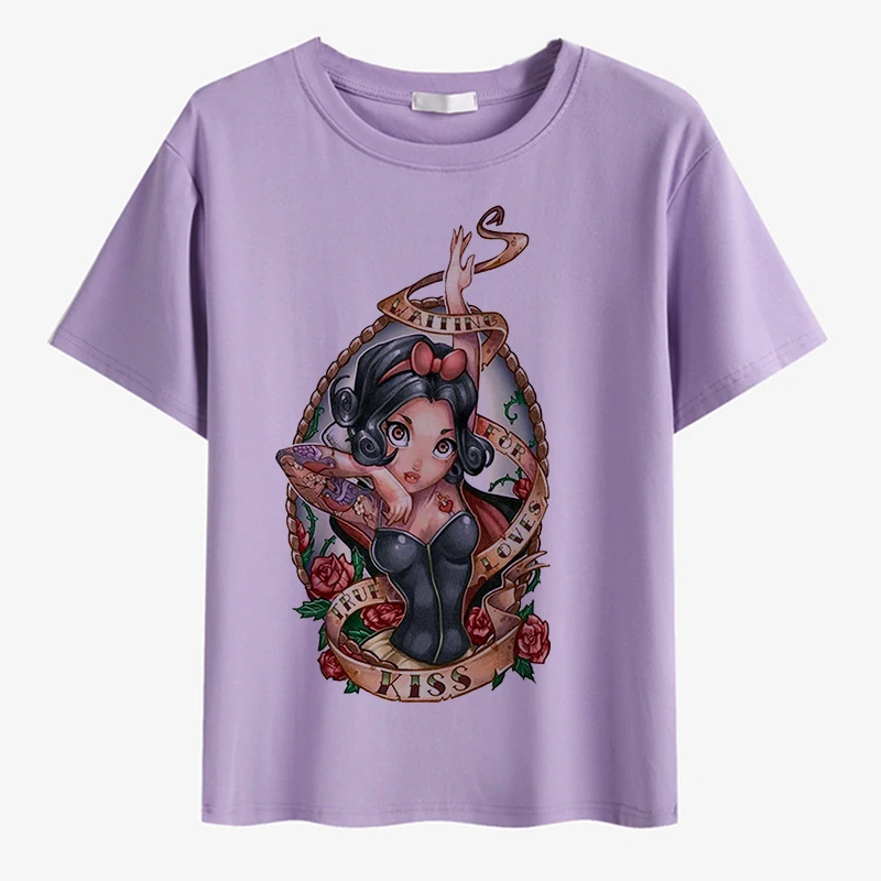 Женская футболка с мультипликационным принтом, фиолетовая модная фу...