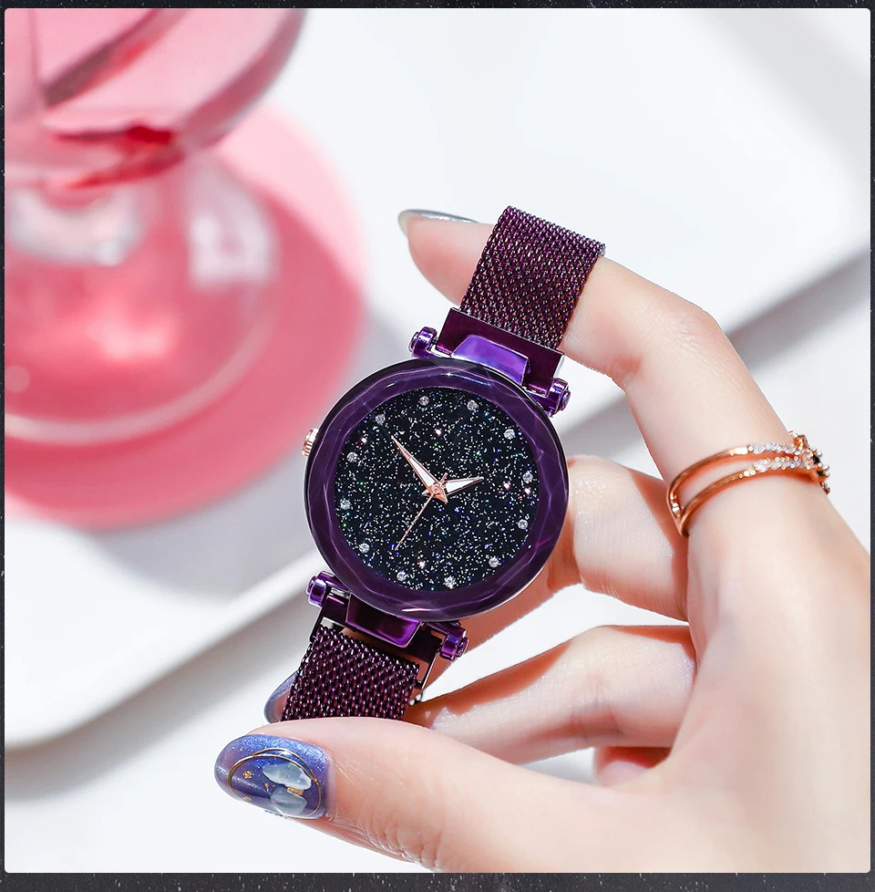 Женские часы-браслет повседневные Модные Кварцевые женские наручные часы Звездное небо магнитные часы женские часы