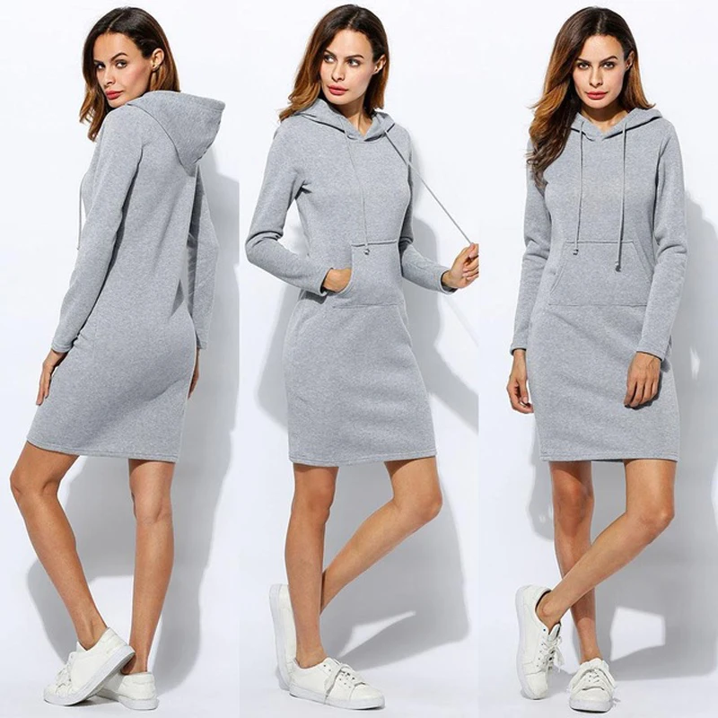 Женское весенне-осеннее платье с капюшоном размера плюс, свободное ...