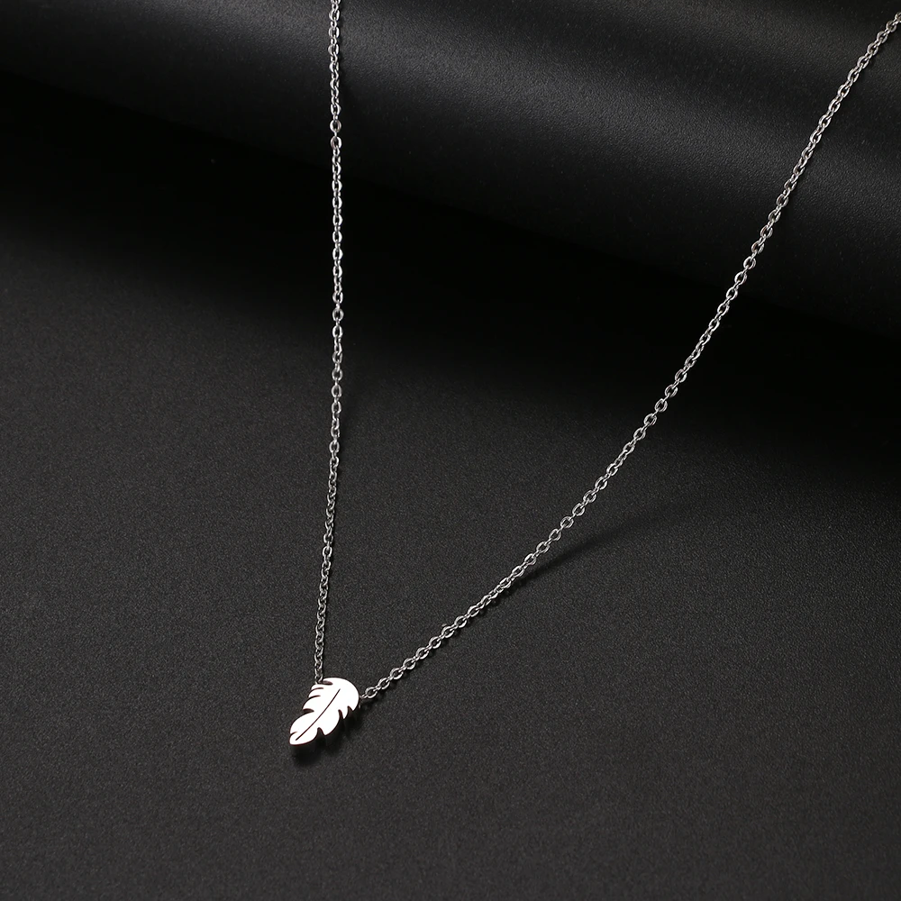Ожерелья из нержавеющей стали, изящные перья, Модная стильная цепоч...