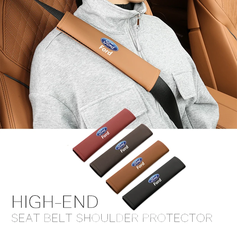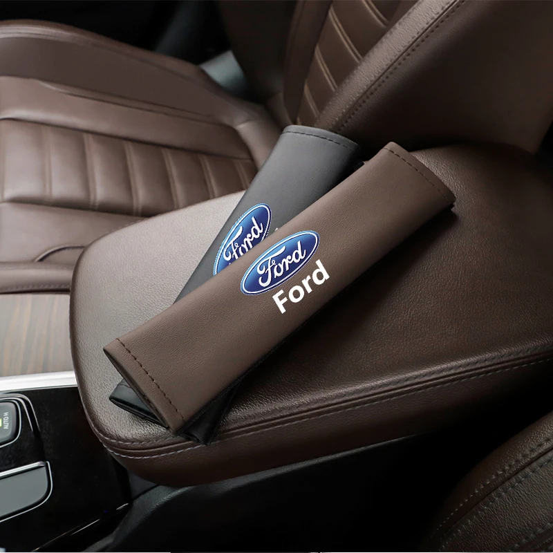 2 шт., автомобильные ремни безопасности, наплечная накладка, кожаный ремень безопасности, чехол для Ford Focus Mk2 Mk3 Fiesta Ranger Mondeo S-MAX Kuga Mustang Escort KA Ecosport Flex Everest Expedition Falcon Fusion