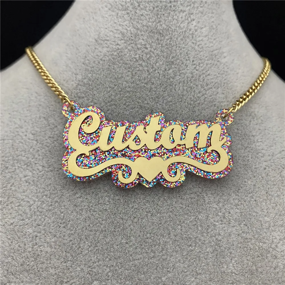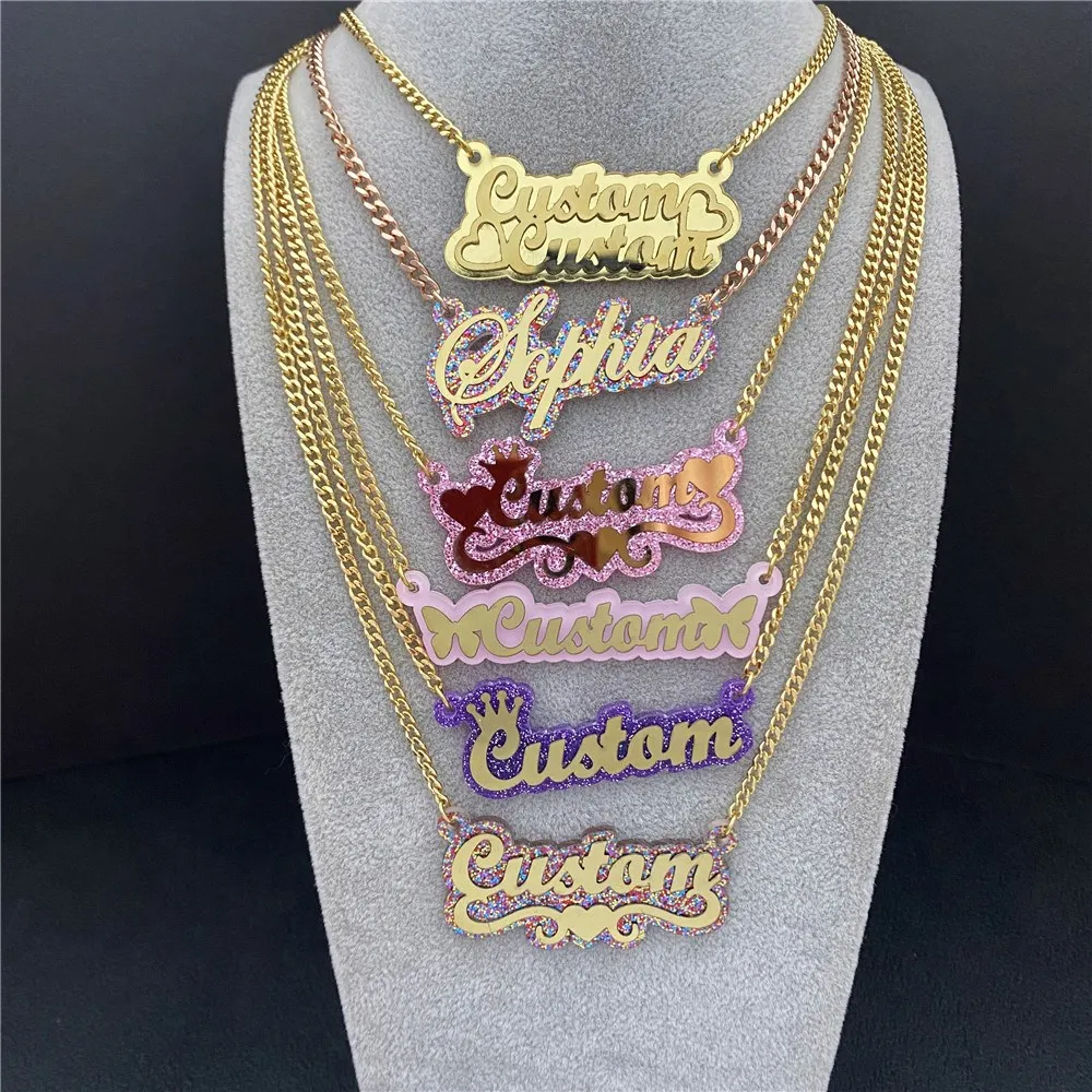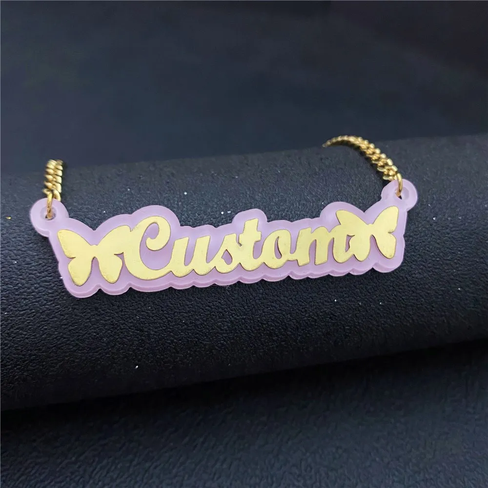 Акриловое ожерелье с именем на заказ с бабочкой, персонализированное ожерелье-чокер с зеркалом из нержавеющей стали с названием для детей, подарки