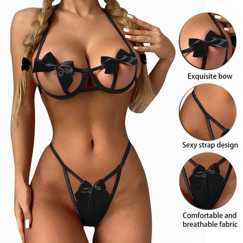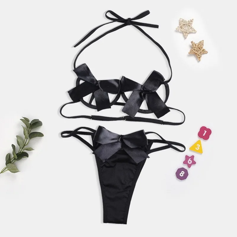 Сексуальный женский комплект нижнего белья с бантом, модный открыты...