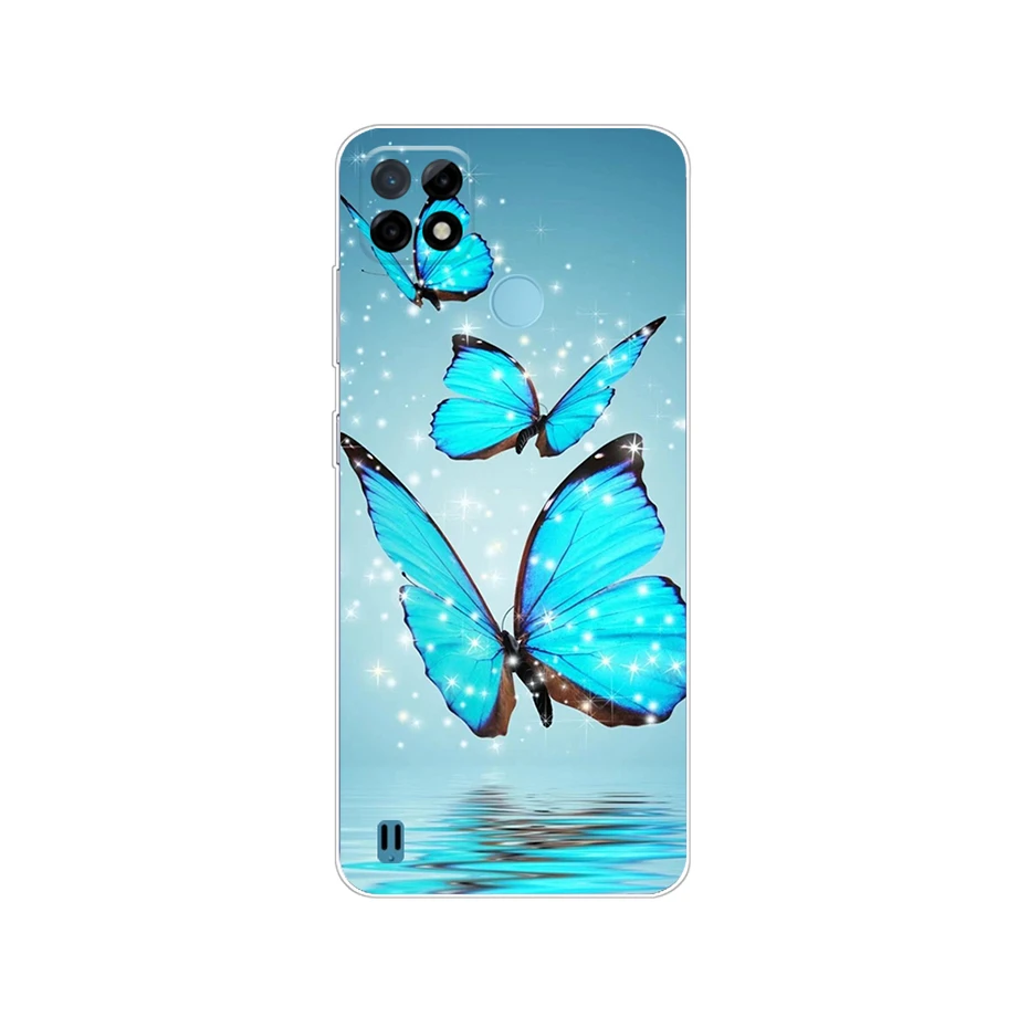 Для Realme C25Y чехол из прозрачного ТПУ мягкого синего цвета с бабочкой чехол для телефона s для Realmi Realme C21Y C25Y c 25y 21y чехол силиконовый чехол