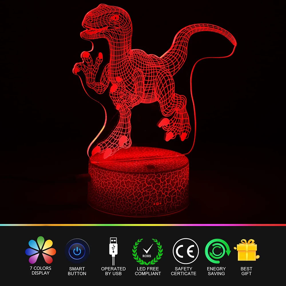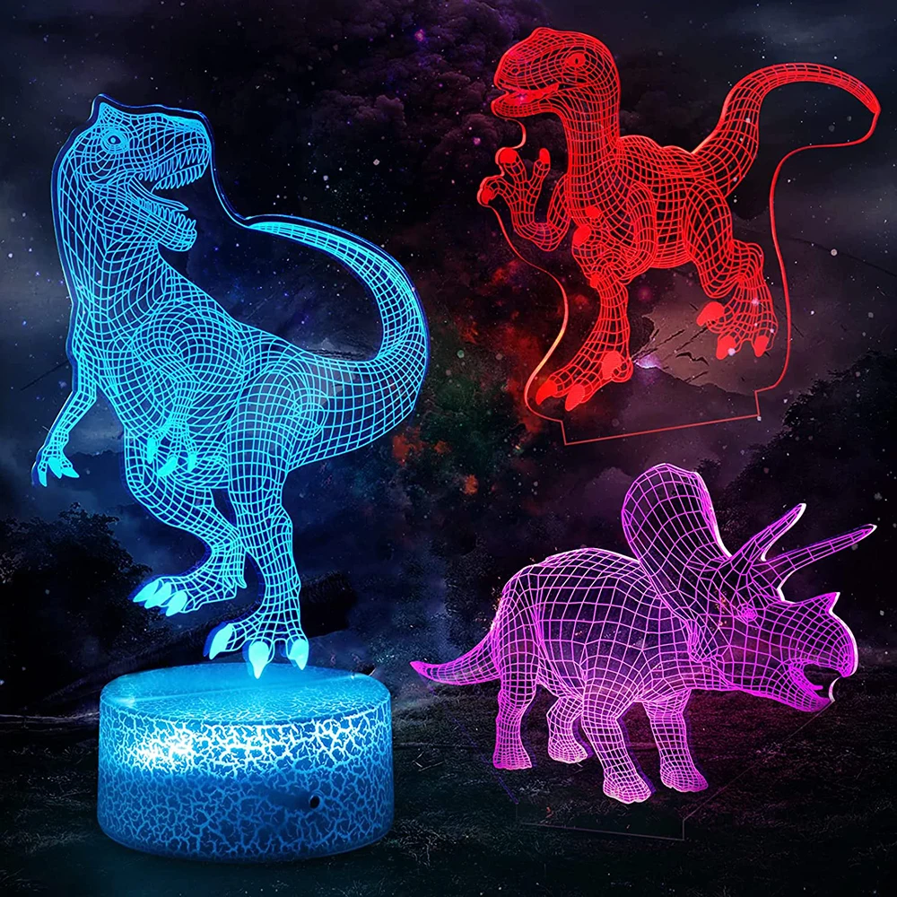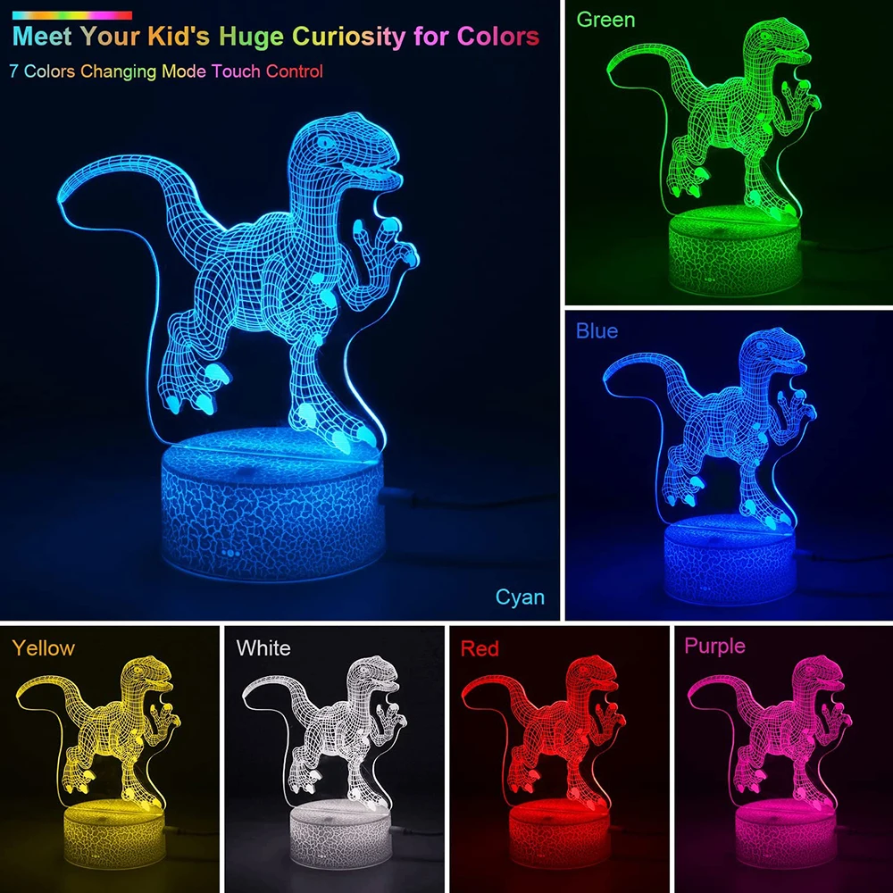 7 цветов, мультяшный дракон, динозавр, 3D светодиодный светильник, креативные животные, USB настольная лампа для дома, для детей, для спальни, Декор, Ночной светильник, подарки на Рождество