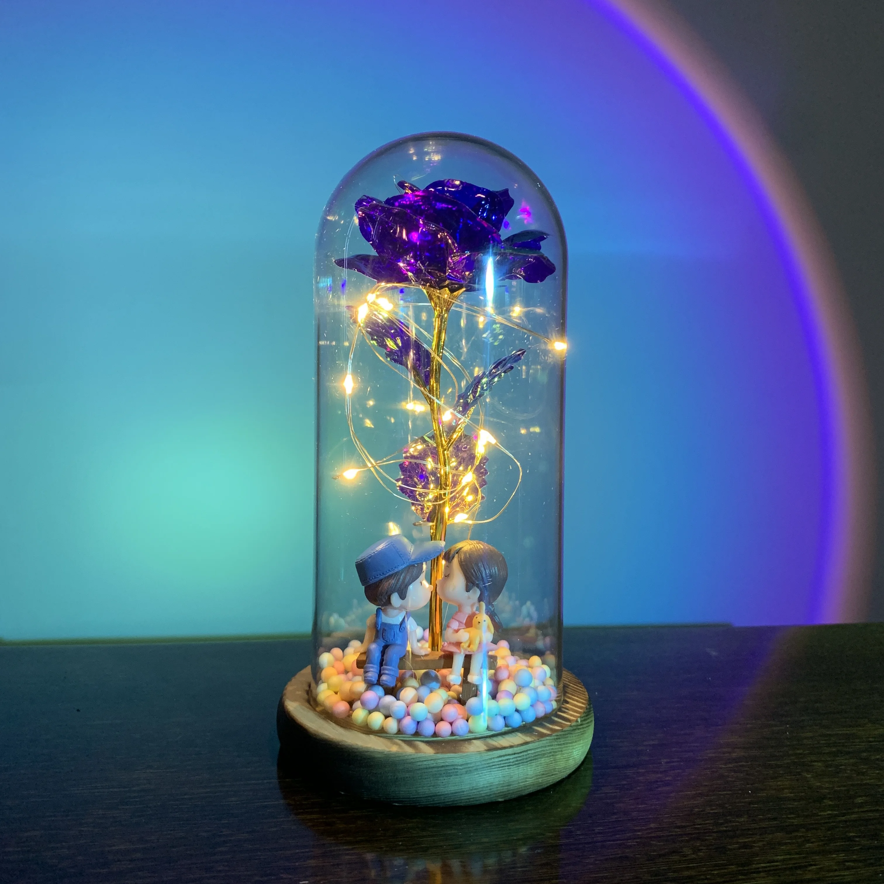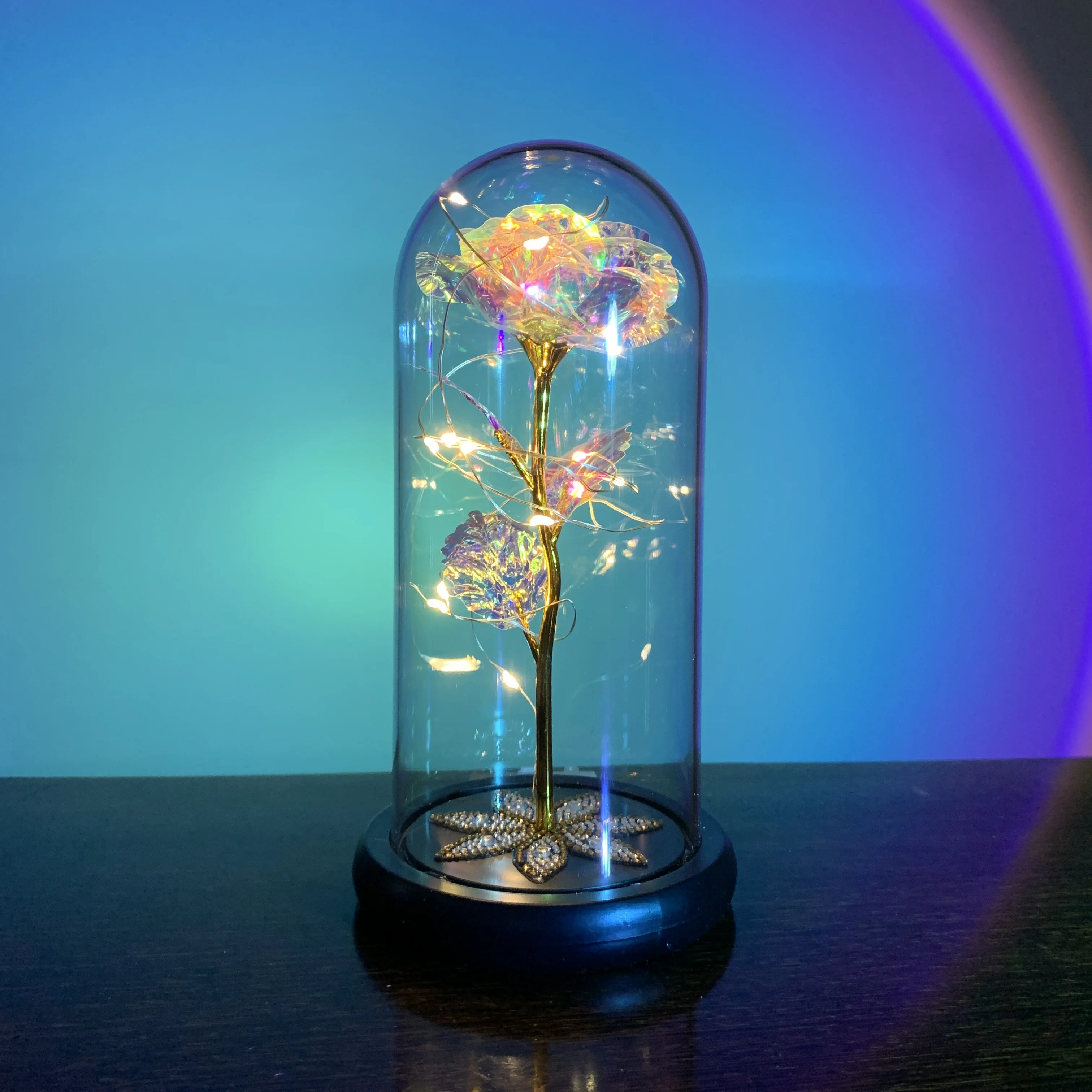 2020 LED зачарованная галактика Роза вечный 24K золотой Фольга цветок с сказочной гирляндой в куполе для рождества День Святого Валентина подарок
