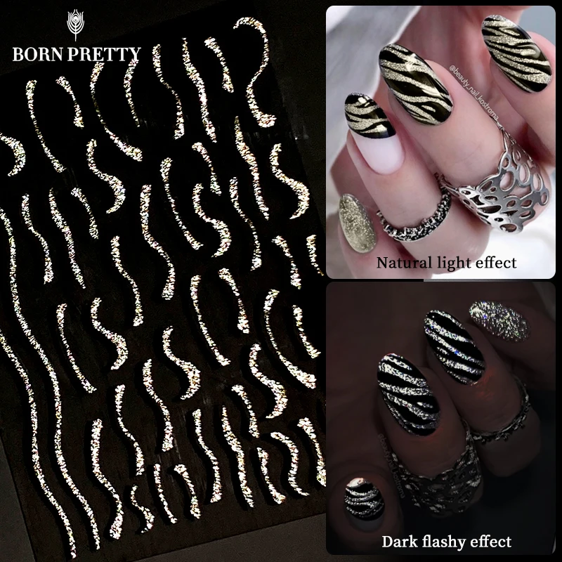 BORN PRETTY светоотражающий Блестящий 3D стикер для ногтей Французская линия наклейки для ногтей полосы Геометрические линии самоклеющиеся 3D наклейки для маникюра