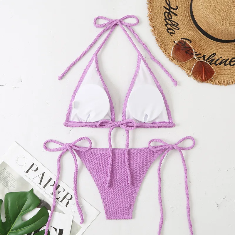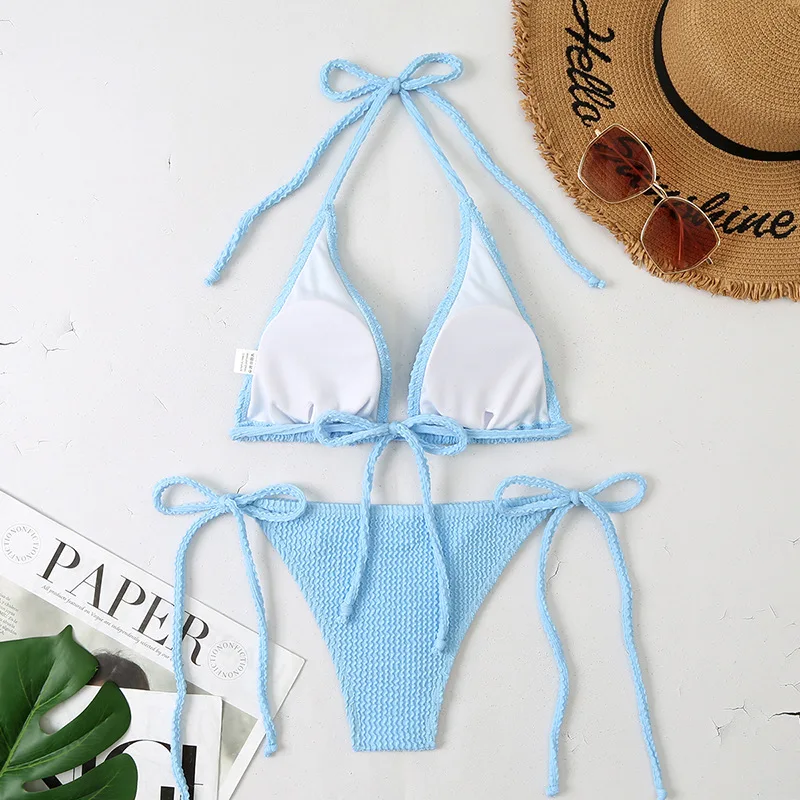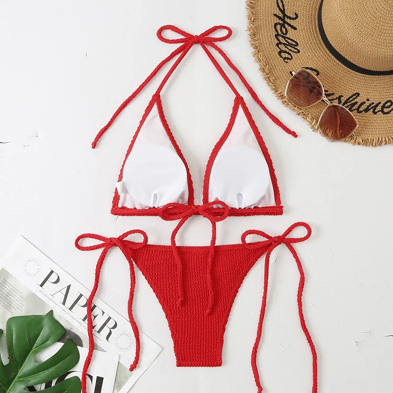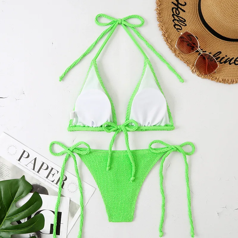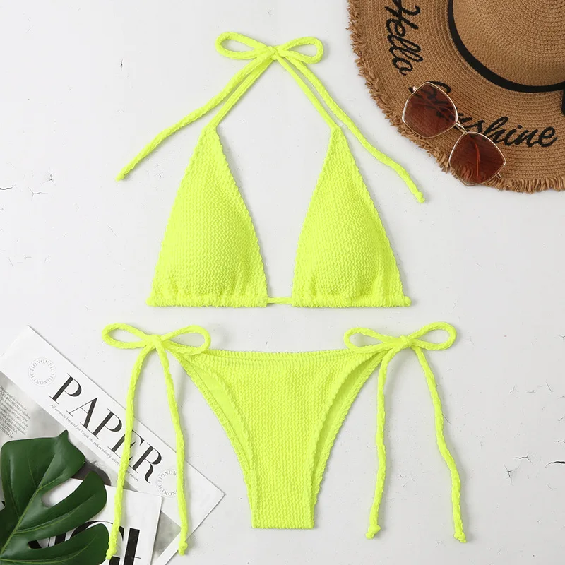 Сексуальный треугольный комплект бикини 2022, Женский однотонный ре...