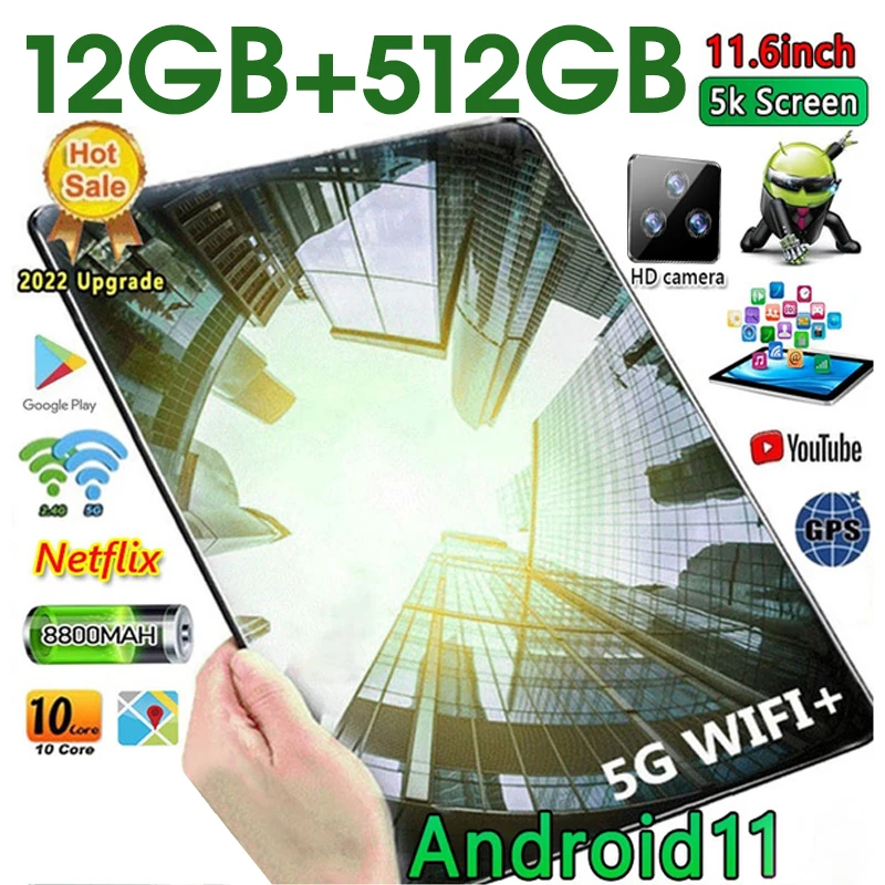 2022 новый оригинальный 4K 12 Гб + 512 Гб памяти Android 11 игровые Обучающие планшеты Поддержка двух карт двойной режим ожидания GPS WiFi умный планшетный ПК