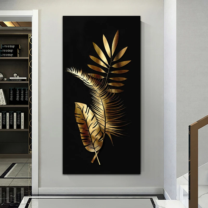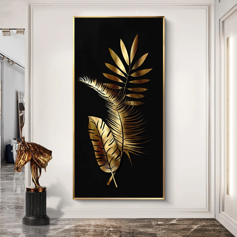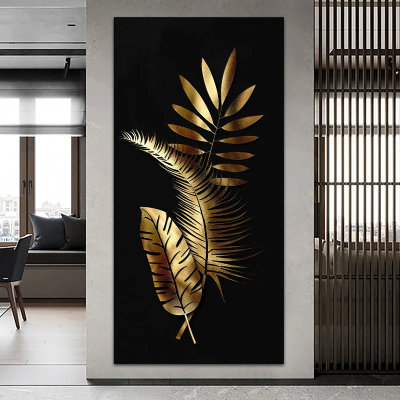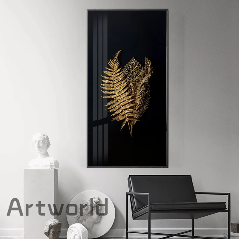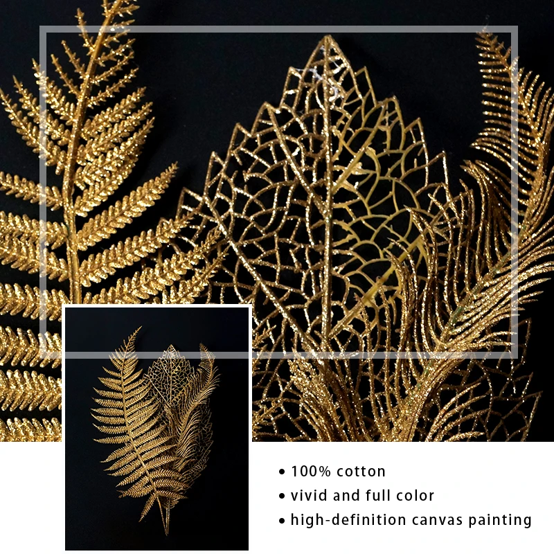 Современное Изображение золотых листьев, роскошное настенное искусство, холст, картина на стену, абстрактный постер и принты для украшения гостиной