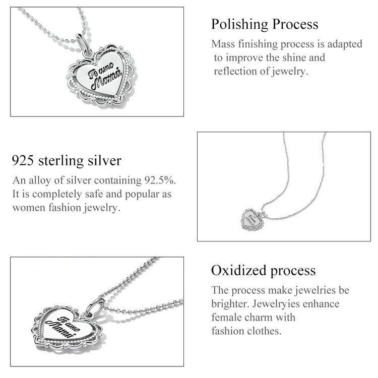 ❤[Описание] ожерелье из бисера украшено кружевным кулоном в форме сердца, который является изысканным и уникальным; Он выгравирован с надписью «Te amo Mama», которая отражает любовь к матери.❤[Спецификация] длина: 43 см (регулируется), любовь: 1,5*1,6 см; Вес: 3,3 г.❤[Материал] Стерлинговое Серебро 925 пробы и окисленное серебро.❤[Для подарка] 1 шт. Серебряное ожерелье 925 пробы и 1 шт. Подарочный мешочек, который является идеальным подарком для мамы, дочки, правки, тети, сестер, друзей.