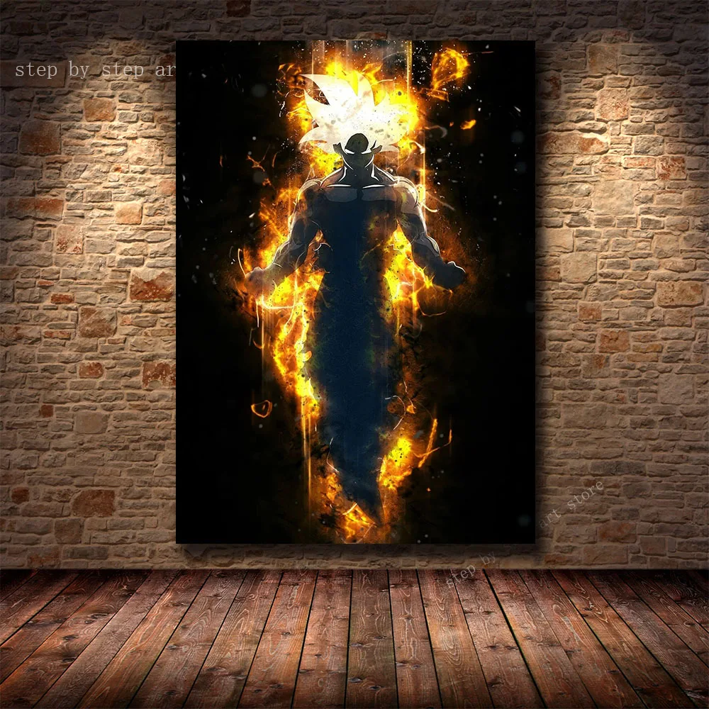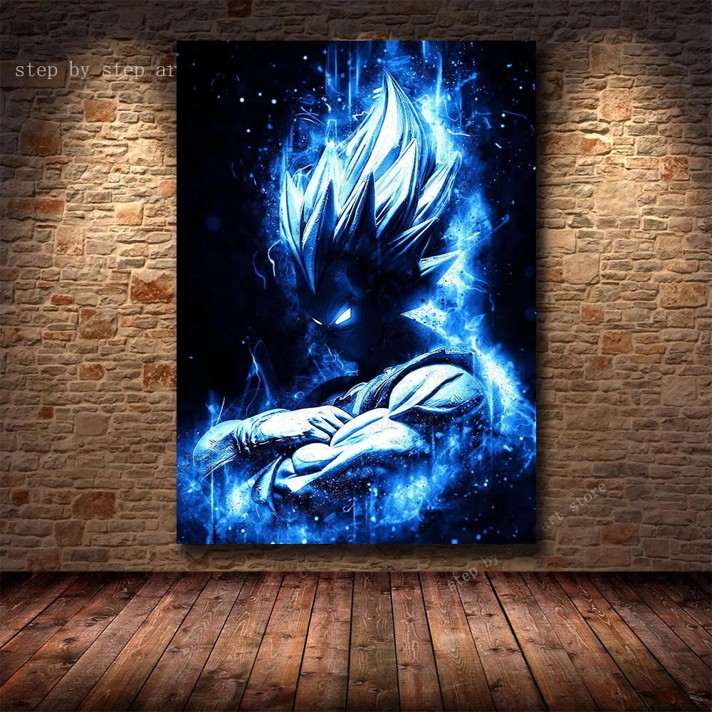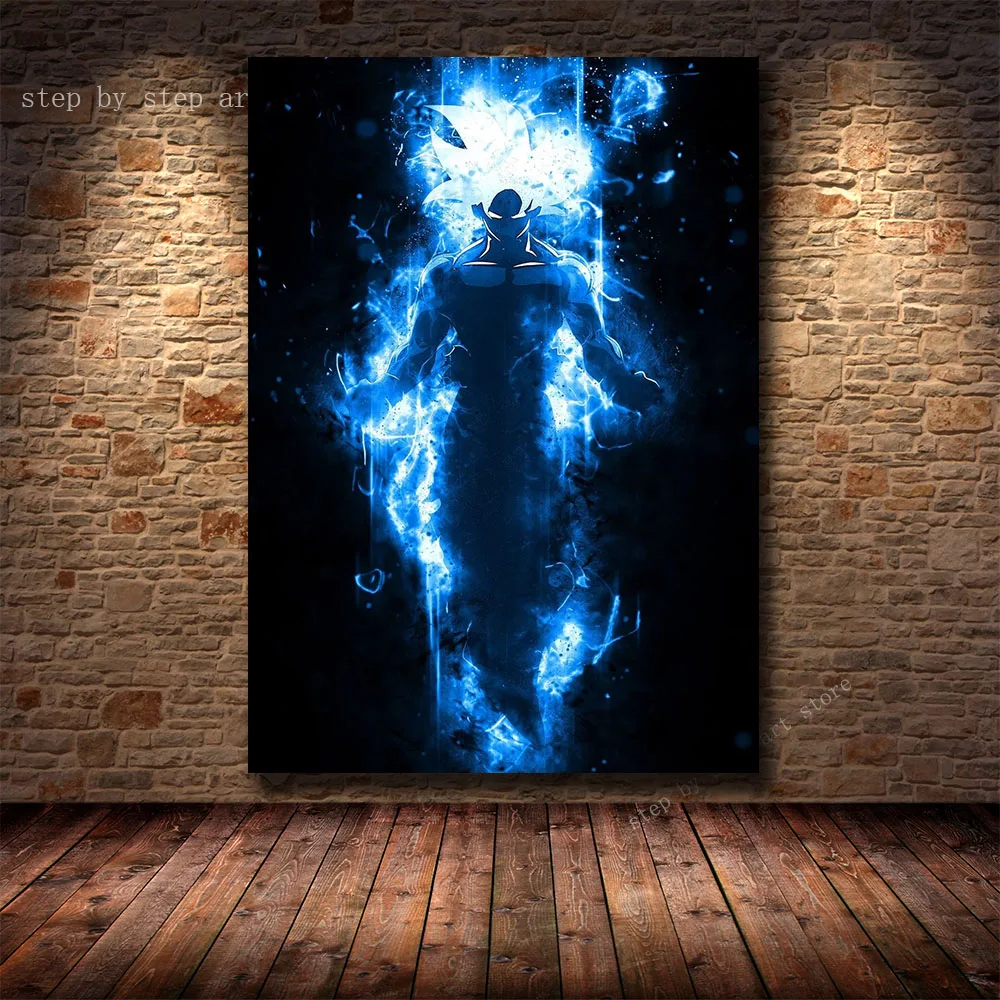 Супер сайян аниме Гоку голубая аура аниме, Вегета ультра инстин холст живопись роспись настенные картины спальня настенный Декор кукро