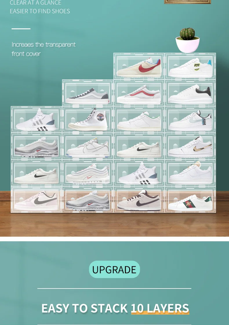 Баскетбольная коробка для обуви, пластиковый прозрачный полипропиленовый шкаф для хранения обуви, вместительный складной боковой шкаф для хранения