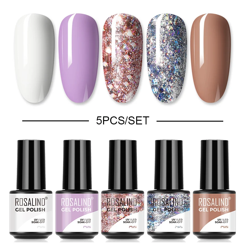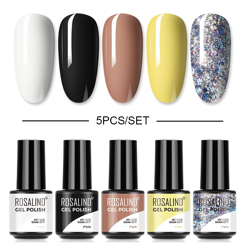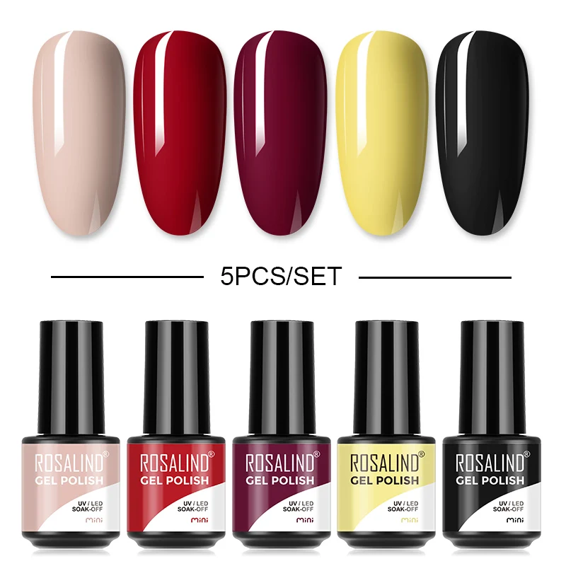 Набор гель-лаков для ногтей ROSALIND, маникюрный набор для дизайна ногтей, Полупостоянный Гибридный лак, базовое верхнее покрытие, Набор лаков для ногтей Gellak