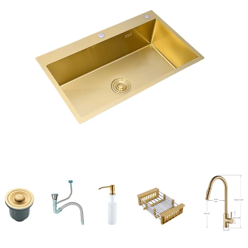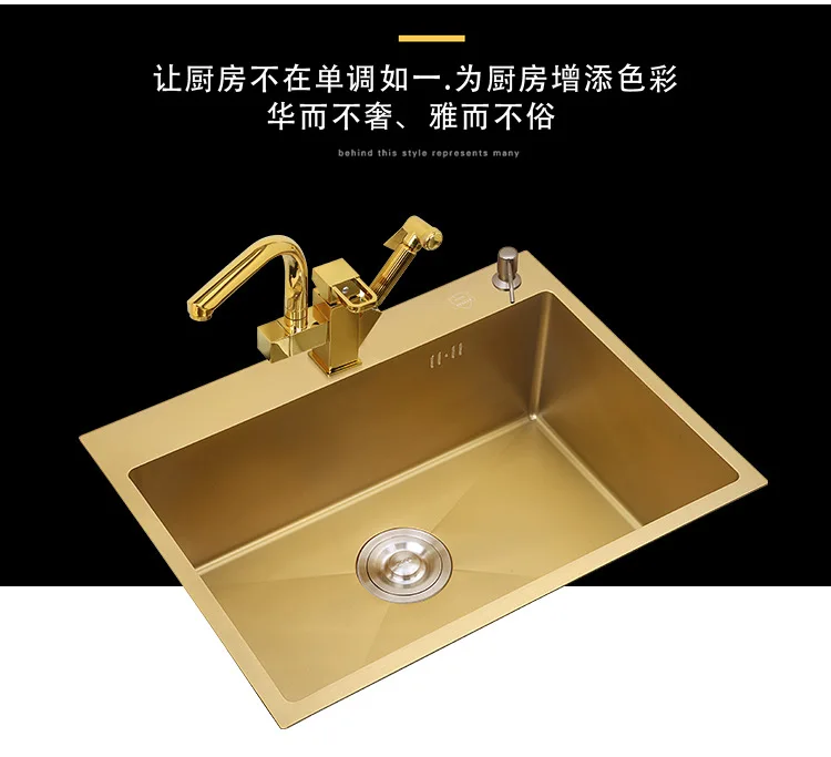 Матовая Золотая кухонная раковина из нержавеющей стали 304, одиночная чаша, счетчик или Нижняя раковина, кухонная раковина толщиной