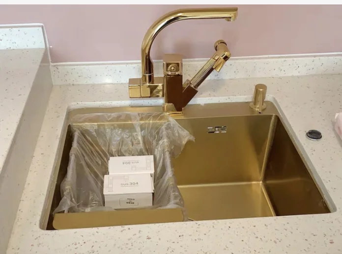 Матовая Золотая кухонная раковина из нержавеющей стали 304, одна ча...