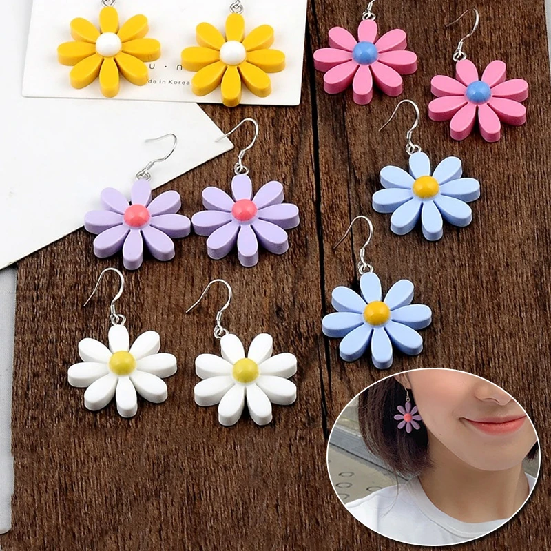 2021 серьги-ромашки Смола Цветы Висячие серьги для женщин Свежий Ст...