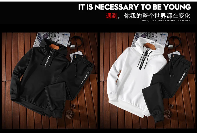 Комплект спортивной одежды для мужчин, толстовка с капюшоном и штан...