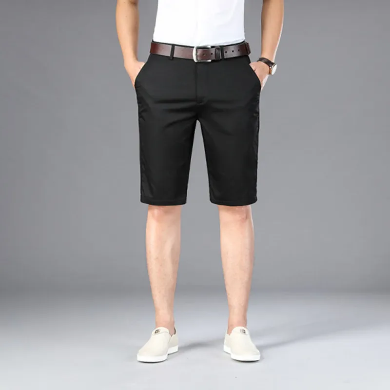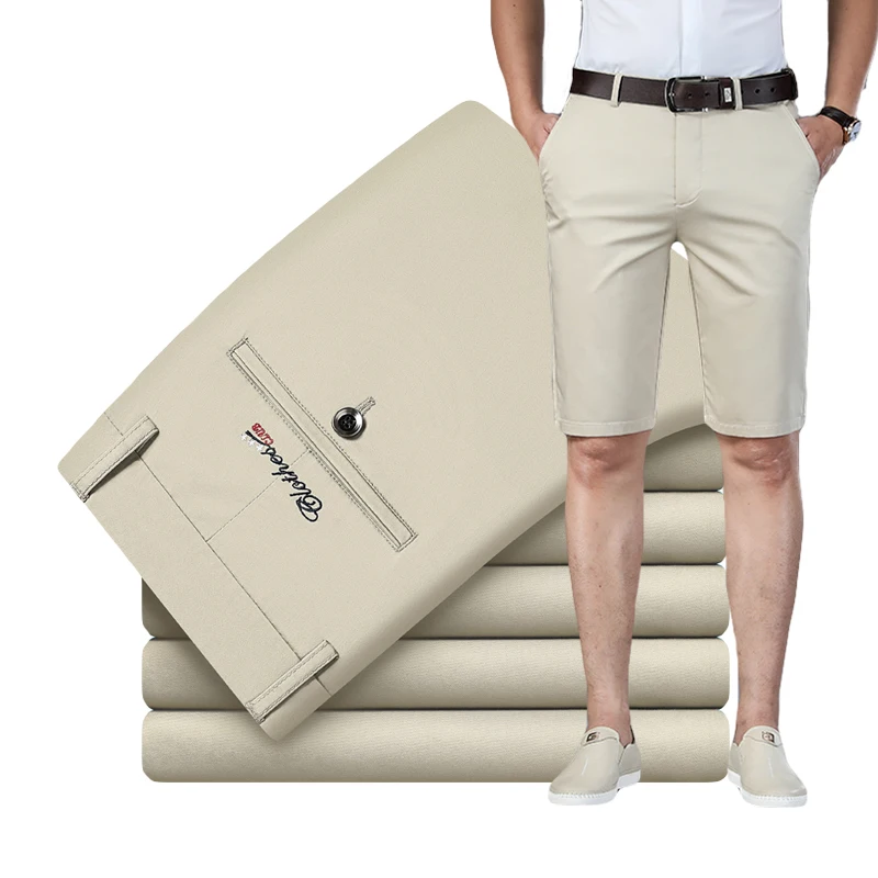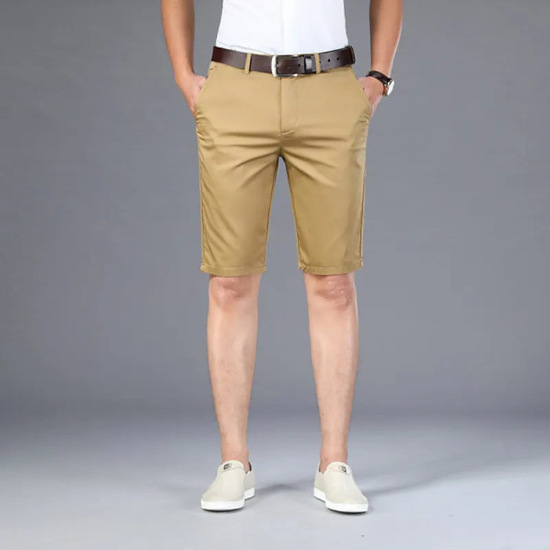 Шорты мужские прямые цвета хаки, деловой Повседневный стиль, эластичные Простые брюки до колен, брендовая одежда