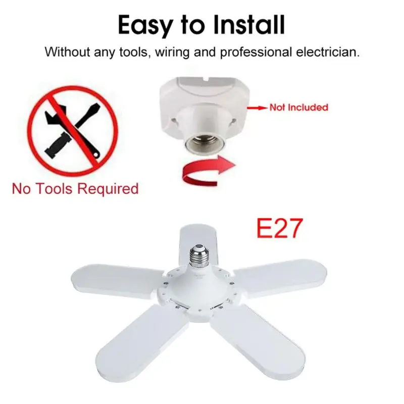 Лм 5 + 1 лопастей, деформируемый светодиодный светильник для гаража E27, Регулируемый потолочный светильник для магазина, складные лампы-вентиляторы