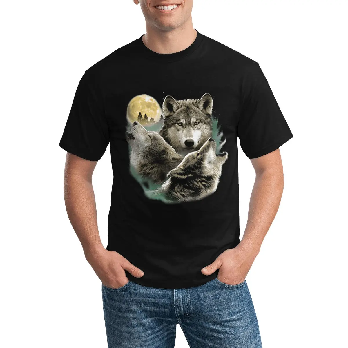 Футболка мужская с изображением воющего в Луне волка и диких животных, 100 хлопок