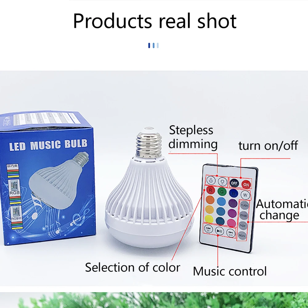 1. Этот свет лампы bluetooth является беспроводным enab светодиодный, разноцветный, Энергоэффективный умный светодиодный свет. RGB цвета и воспроизведение музыки можно легко управлять с помощью пульта дистанционного управления. Работает с устройствами bluetooth (iOS/Andoid/Windows).2. Светодиодная лампа с изменяющимся цветом, 12 цветов, яркий светильник s и Дневной светильник, белый светильник, очень потрясающий, вспышка/Стробоскоп/выцветание/плавный 4 режима светильник. Удовлетворить ваши различные потребности в освещении.3. Умная музыкальная Светодиодная лампа не только может использоваться как светодиодный светильник, но также может использоваться в качестве bluetooth-динамика, У него гораздо больше функций, мощный Динамический драйвер обеспечивает фантастический звук с глубокими басами для прекрасного прослушивания, заставляя ваши вечерние часы добавить много цветов, Вашим друзьям понравятся вечерние Магическая наука.4. Умный светодиодный светильник со стандартным основанием E 27, его можно легко установить и снять. Лампа-светильник bluetooth с динамиком подходит для бара, ресторана, спальни, шкафа, шкафа, коридора, мастерской, гаража, лестницы, вечерние и другие места.5. ПВХ абажур с высоким коэффициентом пропускания, светильник яркий и равномерный без бликов. Простота в использовании.