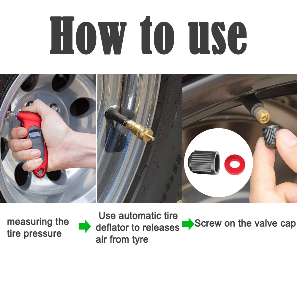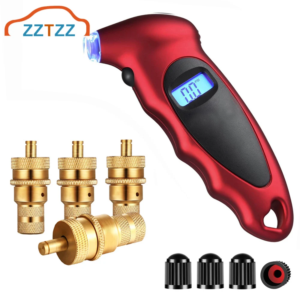 Манометр ZZTZZ с ЖК-дисплеем и подсветкой, высокоточный цифровой измеритель давления в шинах, 4 дефлятора, 4 колпачка стержня клапана