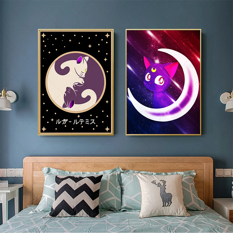 Сейлор Мун, классический аниме постер, кот, домашний питомец Луна Артемис, холст, картина, розовая стена, картины, кавайный домашний декор для девушки, спальни