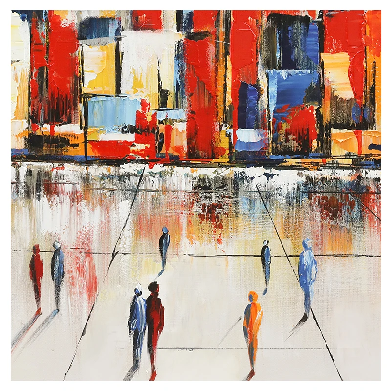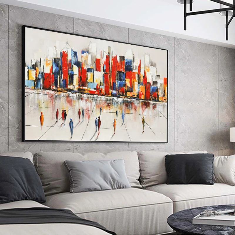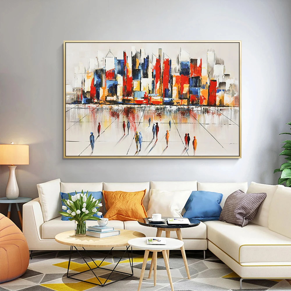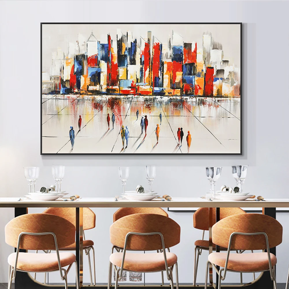 Пейзаж города, холст, масляная живопись, фигурки, красочное искусство, абстрактная эстетика, настенный постер, картина, бесплатная доставка, домашний декор