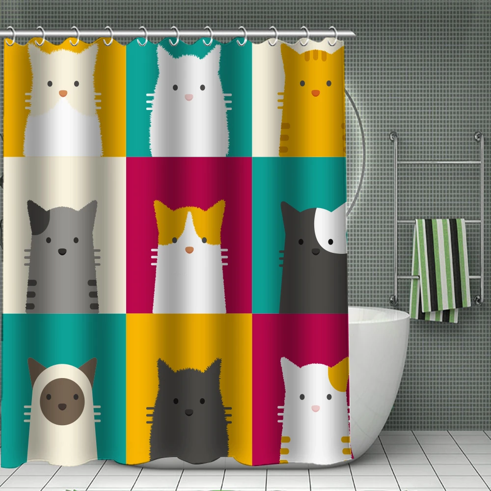 Занавеска для душа с мультяшными животными, кошкой, собакой, медвед...