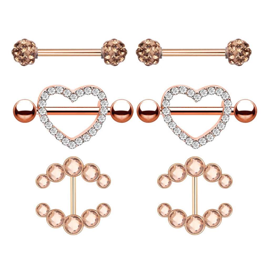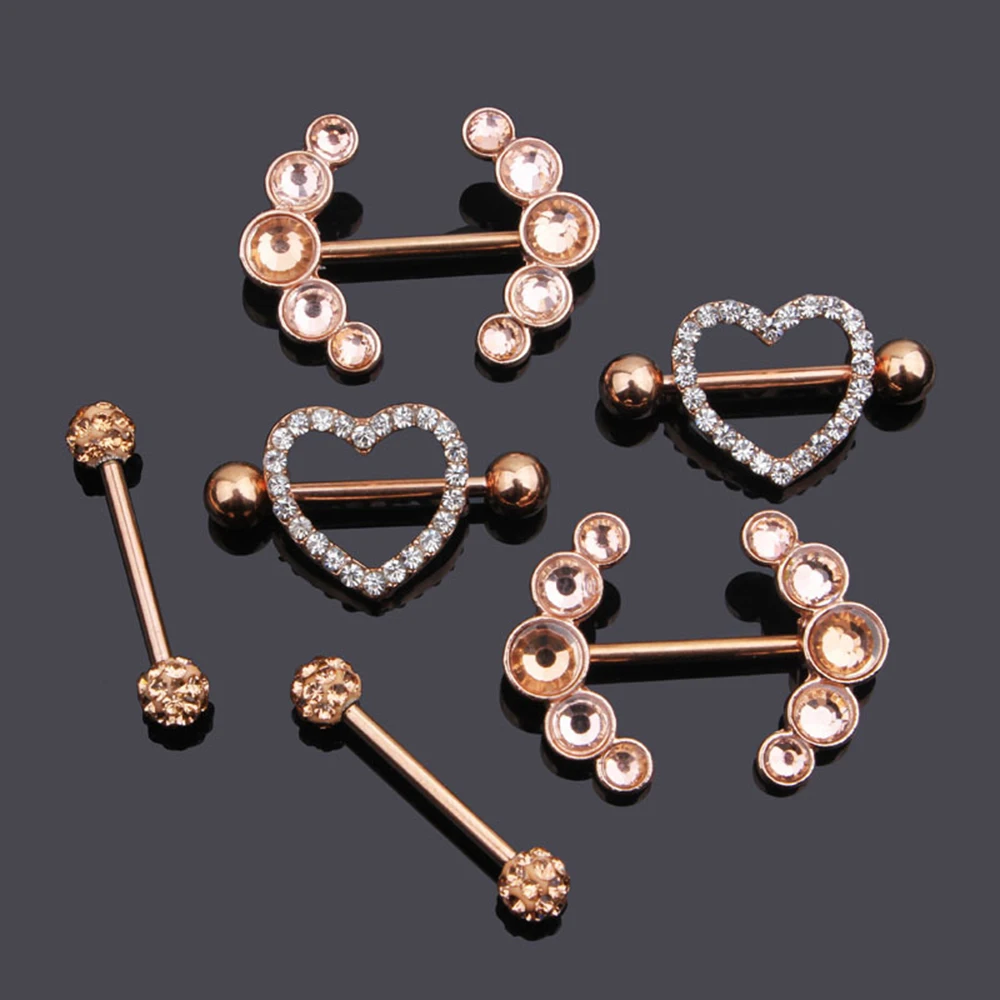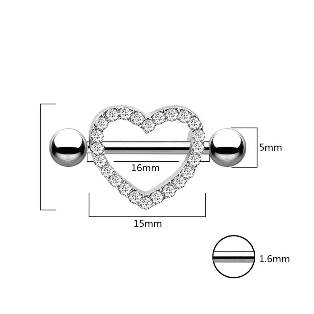 Хирургическая сталь сердце соска набор для пирсинга 14G с украшение...