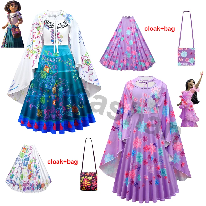 платье для девочки энканто Mirabel Madrigal Isabela костюм детский Костюмы для косплея Плащ Платье Сумка Комплект Детская Одежда День Рождения Необычные Платья