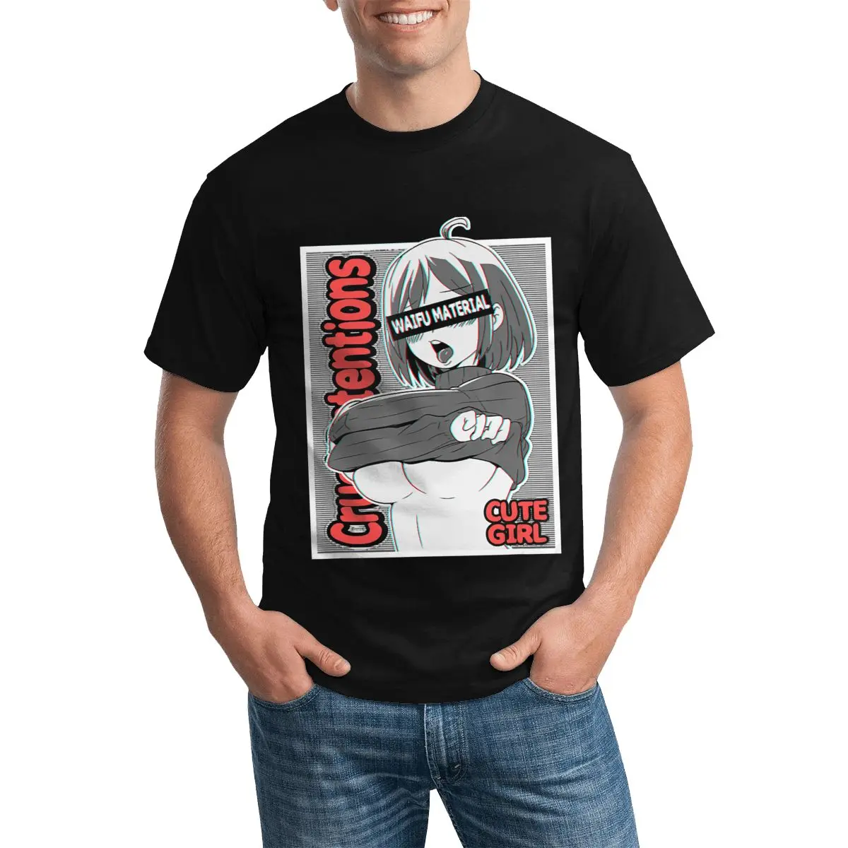 Футболка Waifu из материала Lewd Otaku, Сексуальная Милая Хлопковая мужская футболка для девушек, базовая футболка с принтом