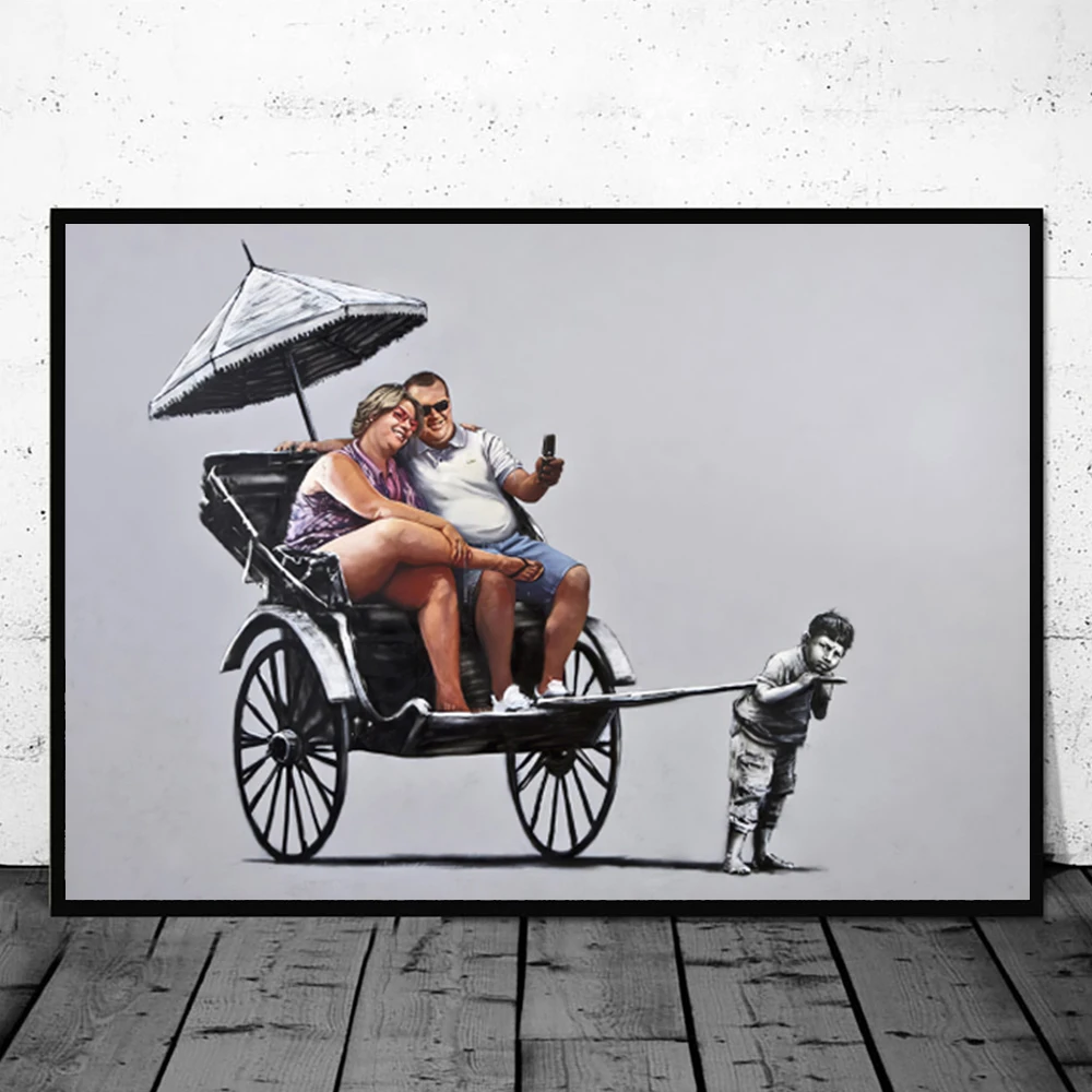 Художественная живопись рикша серия Бэнкси, рикша, Постер и принты на стену, художественная роспись, холст для украшения гостиной
