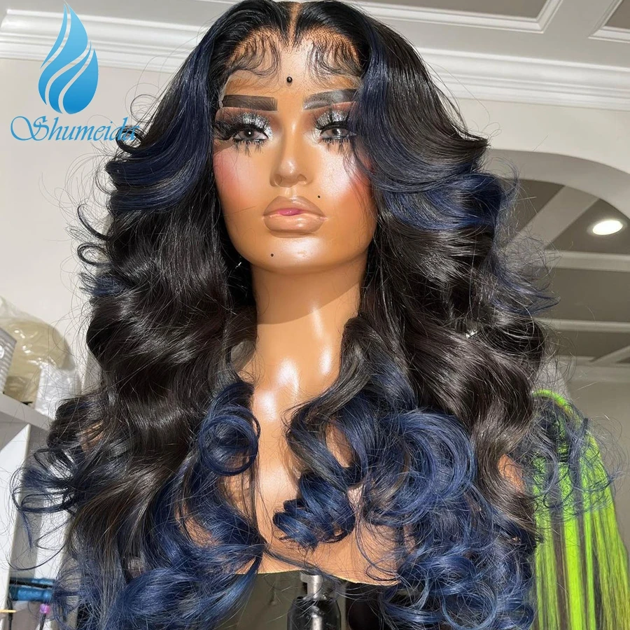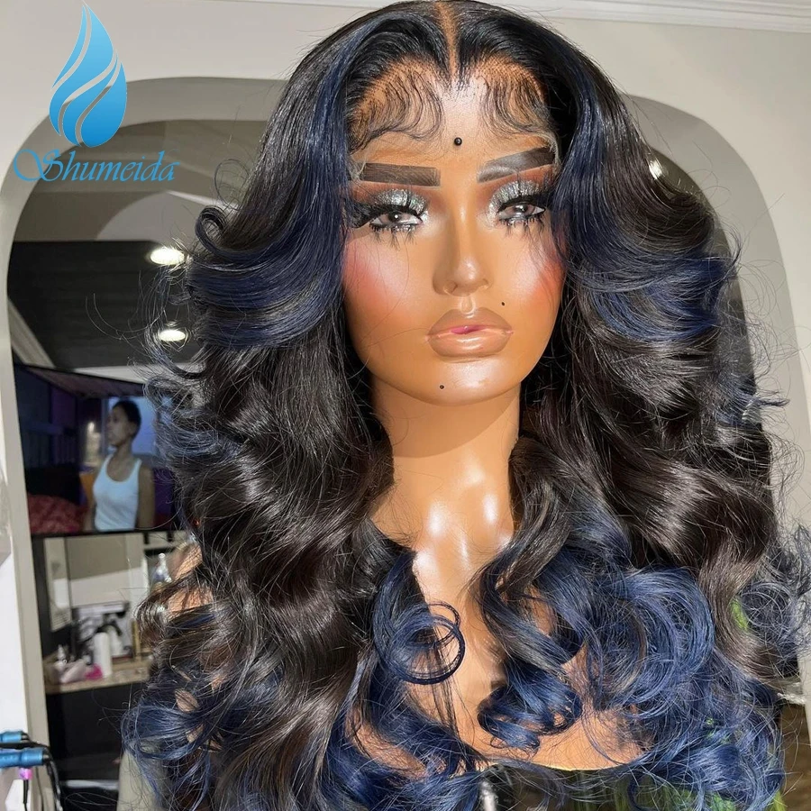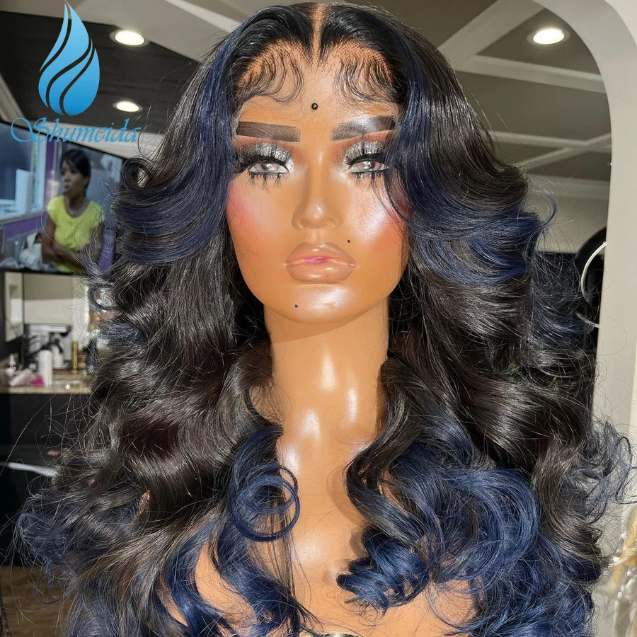 Shumeida Омбре синий цвет 13*4 кружевные передние человеческие парики бразильские неповрежденные человеческие волосы клеящие парики для женщин детские волосы предварительно выщипанные