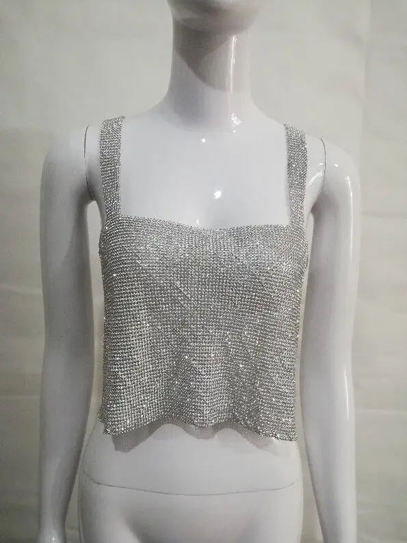 2022 блестящий топ для ночного клуба с открытой спиной Стразы женск...