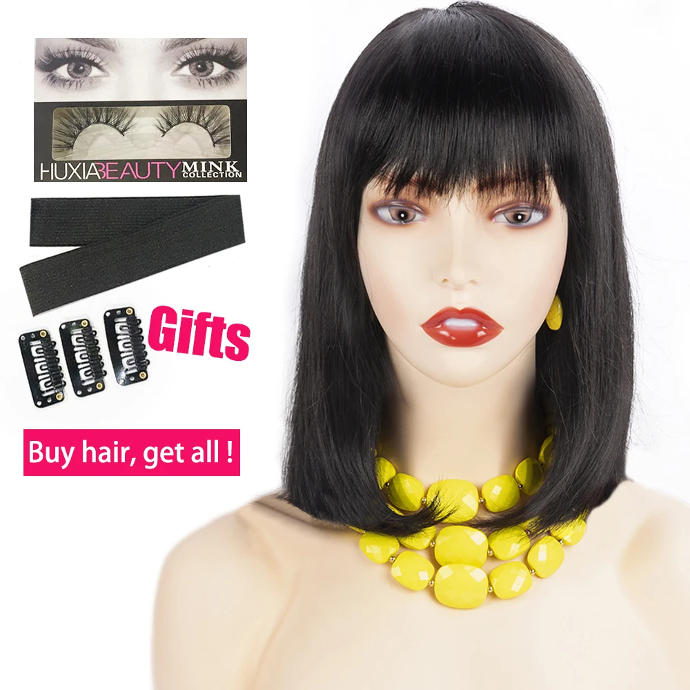 Прямые парики из человеческих волос с челкой, парики полностью машинной работы, бразильские волосы Remy, человеческие волосы, парики для женщин 8 10 12 14 дюймов