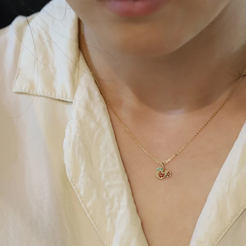 S925с посеребренное ожерелье из 14-каратного золота, кулон, красочный Циркон в форме вишни, милый фрукт, мини-ключица, кулон, ювелирные изделия, модный подарок