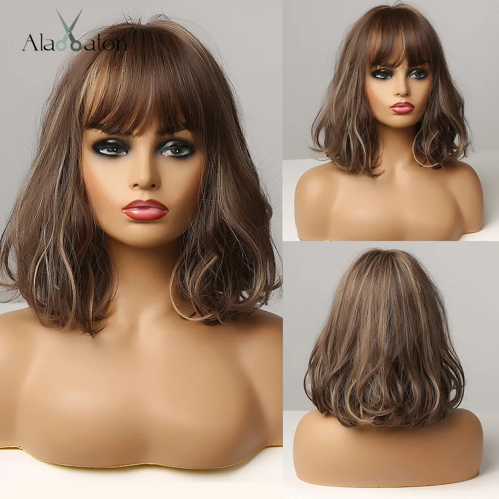 Короткие волнистые синтетические парики ALAN EATON с боковой челкой...
