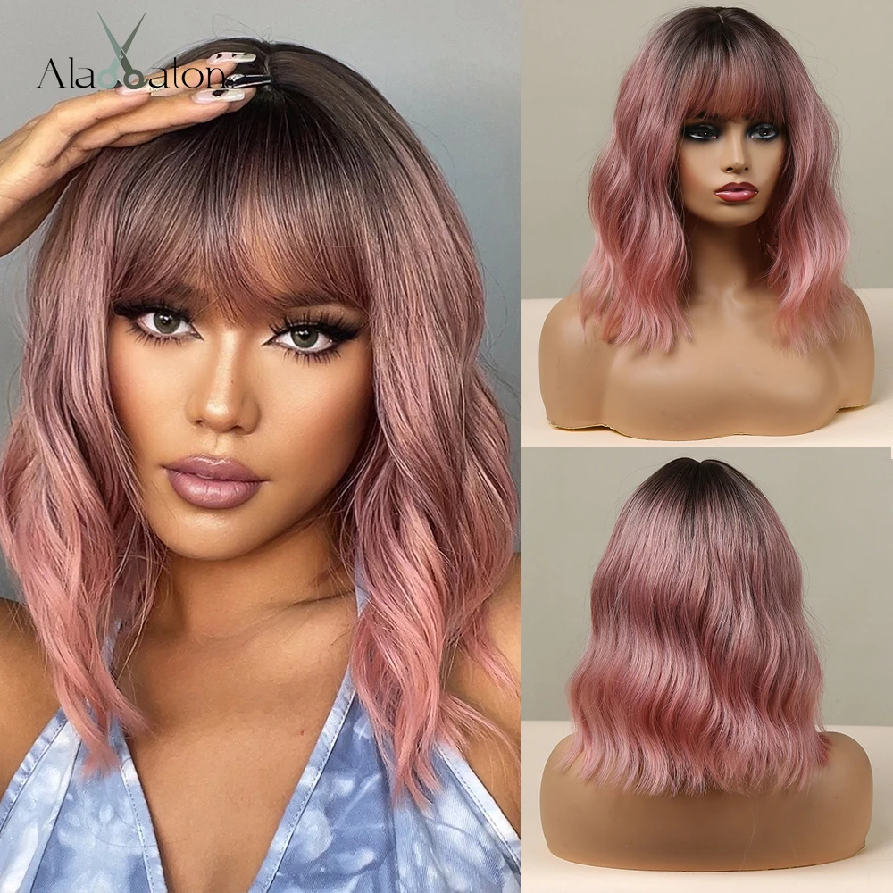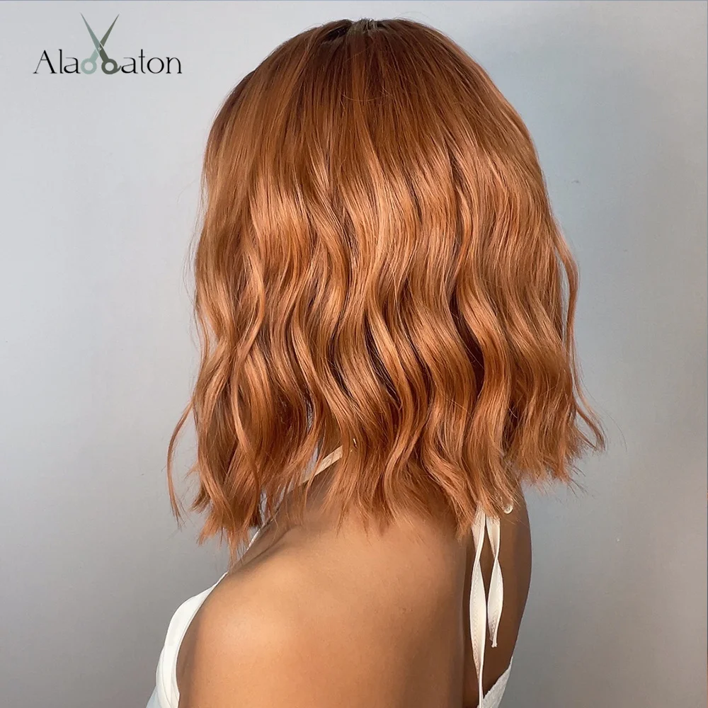 ALAN EATON темно-оранжевый цвет имбиря синтетические парики с челкой короткая волна боб парики для черных женщин косплей ежедневно жаростойкие