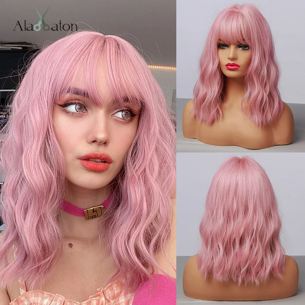 Искусственные волосы ALAN EATON, розовые, с челкой, для косплея, ес...