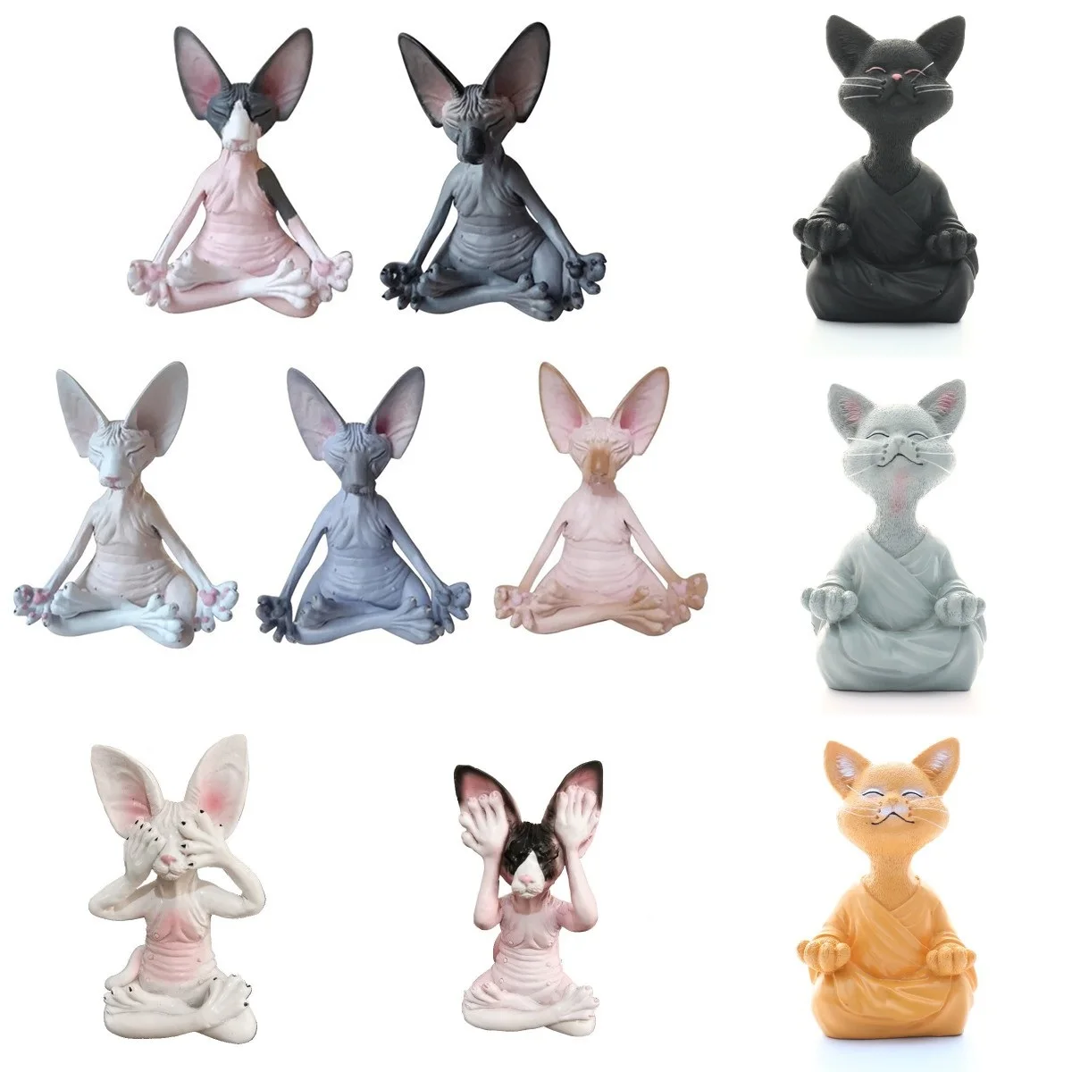 1 шт. причудливая черная статуэтка Будды Сфинкса кошки для медитации йоги Коллекционная счастливая кошка домашний сад искусственная скульптура